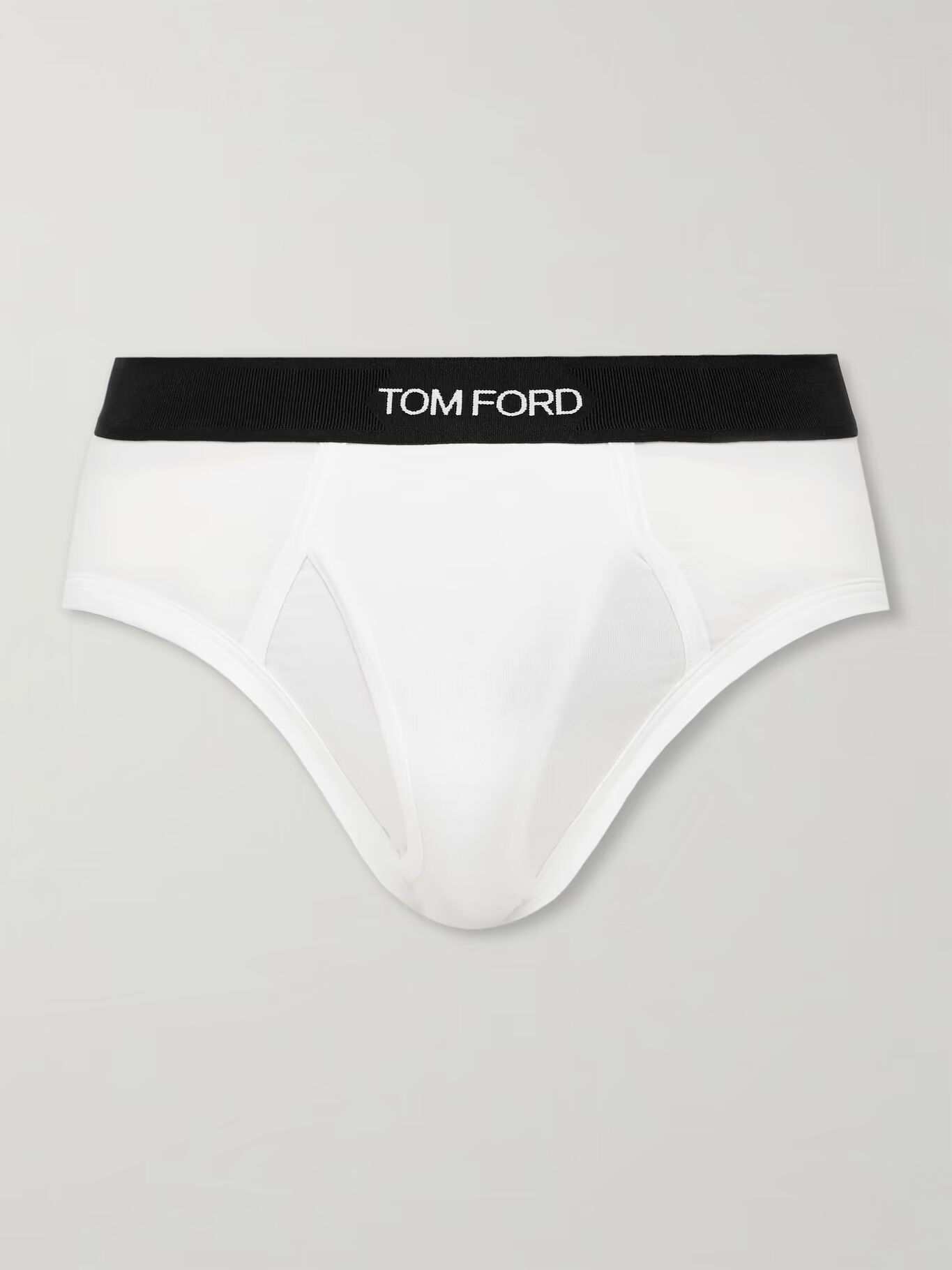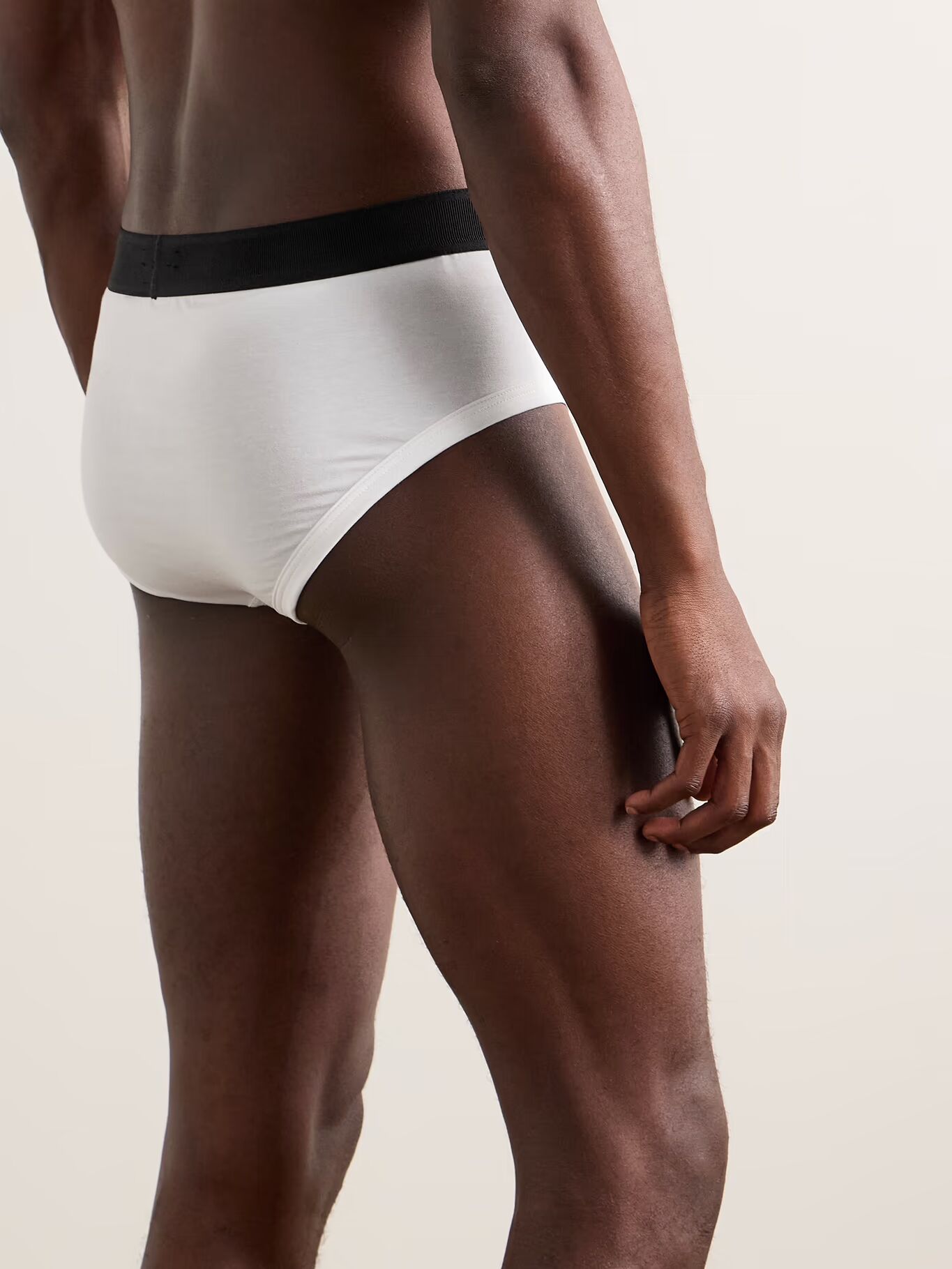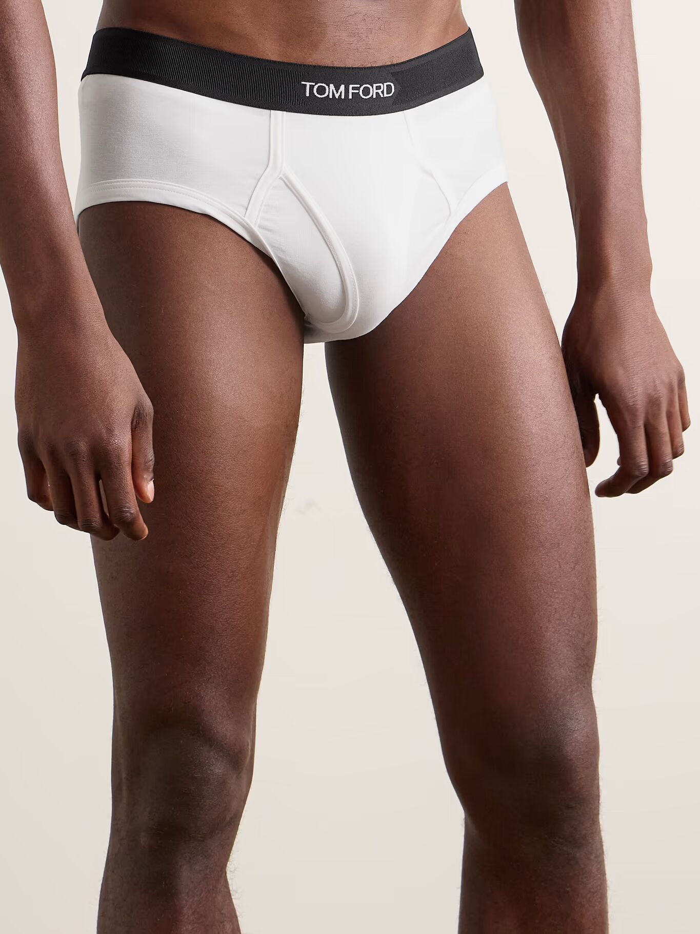 TOM FORD советует тщательно выбирать нижнее белье — лучше всего трусы подходят под хорошо облегающие брюки. Эта пара сшита из роскошной смеси хлопка, модала и стрейча, что обеспечивает особую мягкость и комфорт. Они дополнены элегантным логотипом, вытканным на поясе.