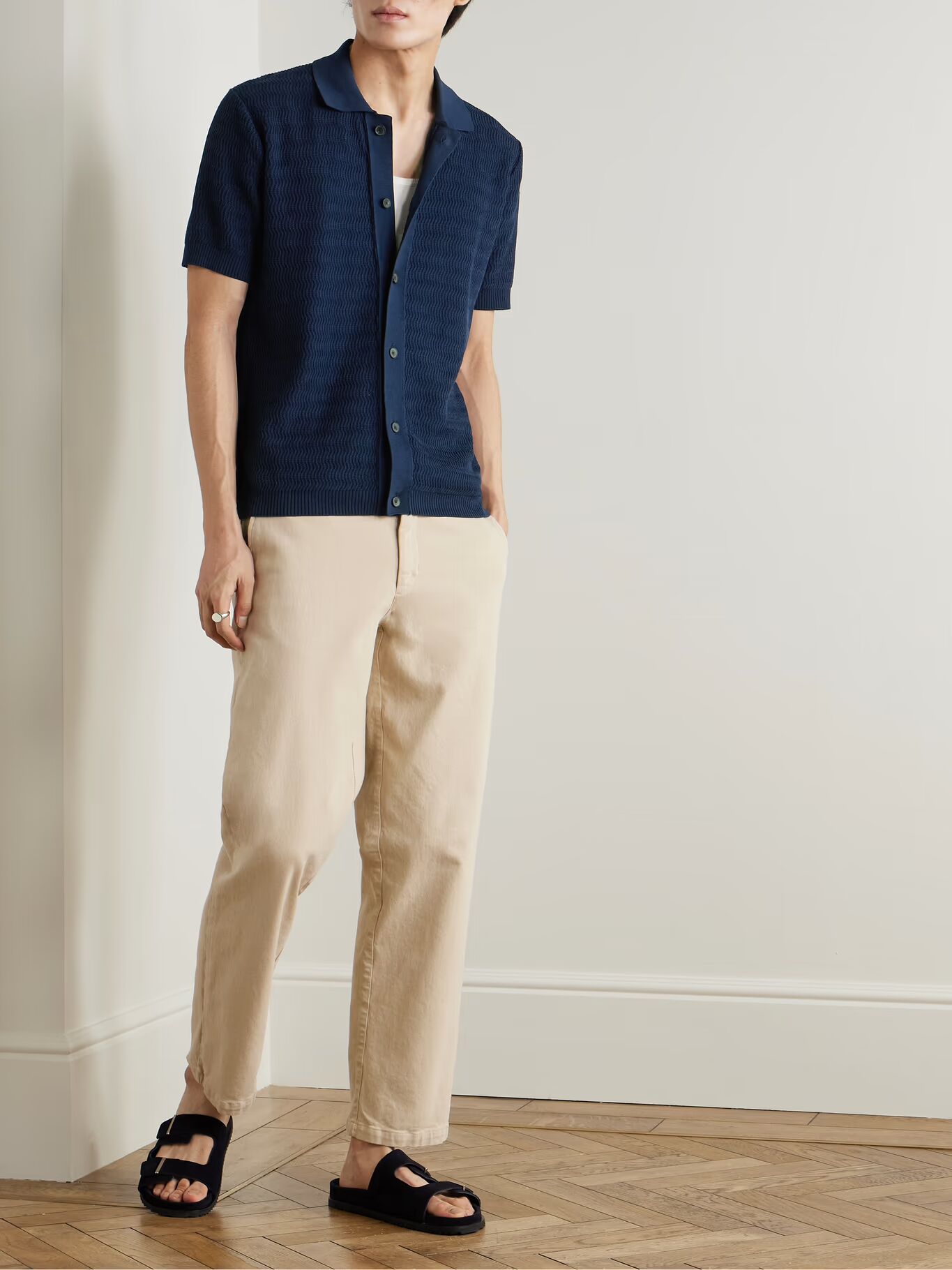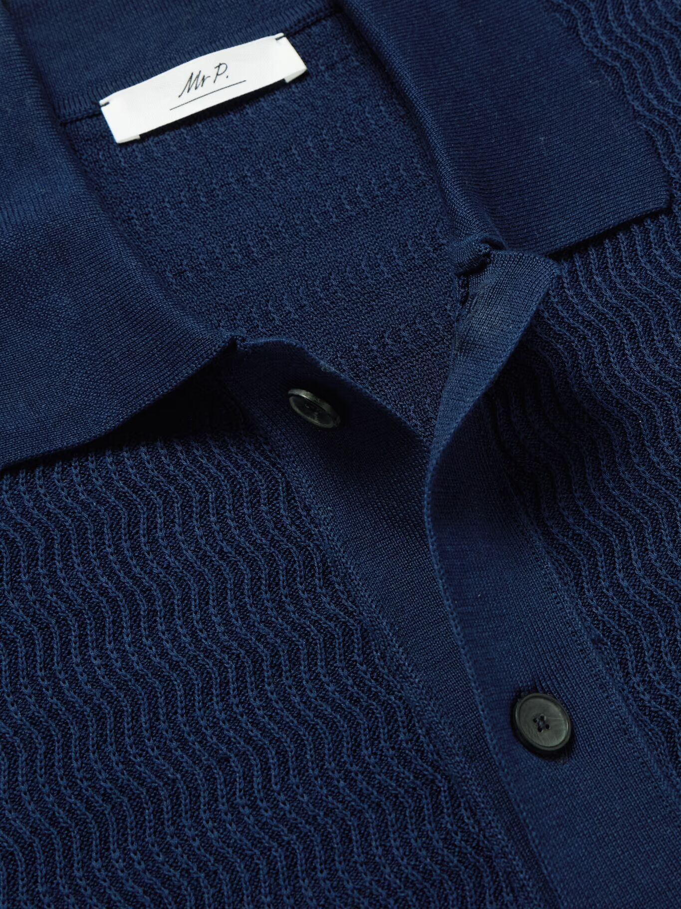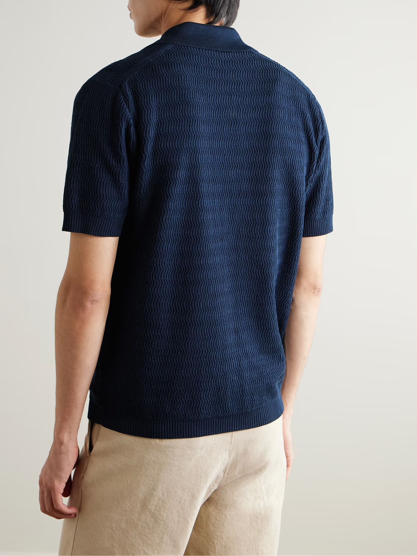РАЗРАБОТАНО MR PORTER. Приоритетом в Mr P. является создание одежды, которая прослужит долго, как с точки зрения качества, так и неизменчивого стиля. Эта рубашка связана из мягкого хлопка уникальным волнистым узором. В этом сезоне мы сделали ее в двух цветах.