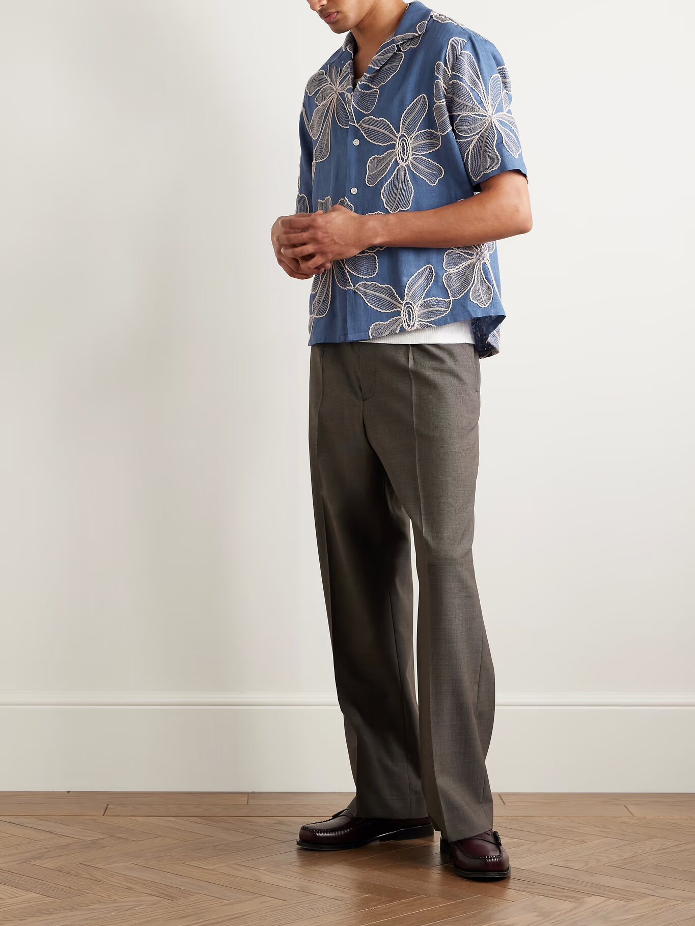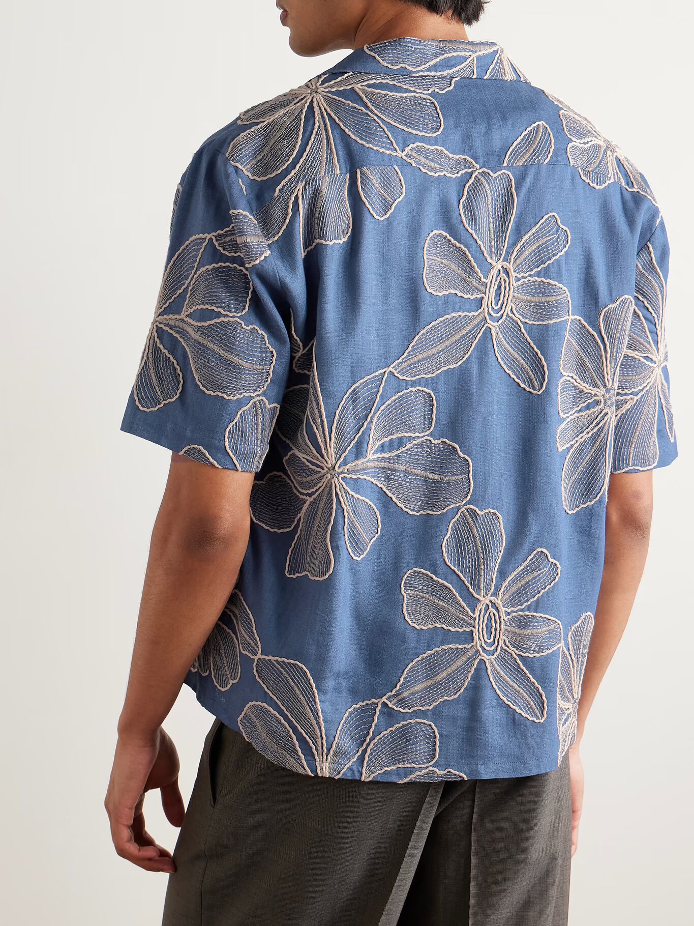 Рубашка Corridor вышита крупными цветами - нити имеют разную ширину и текстуру, создавая почти 3D-эффект. Она сшита из легкой вуали с оттенком льна, поэтому она будет охлаждать вас в теплые дни.