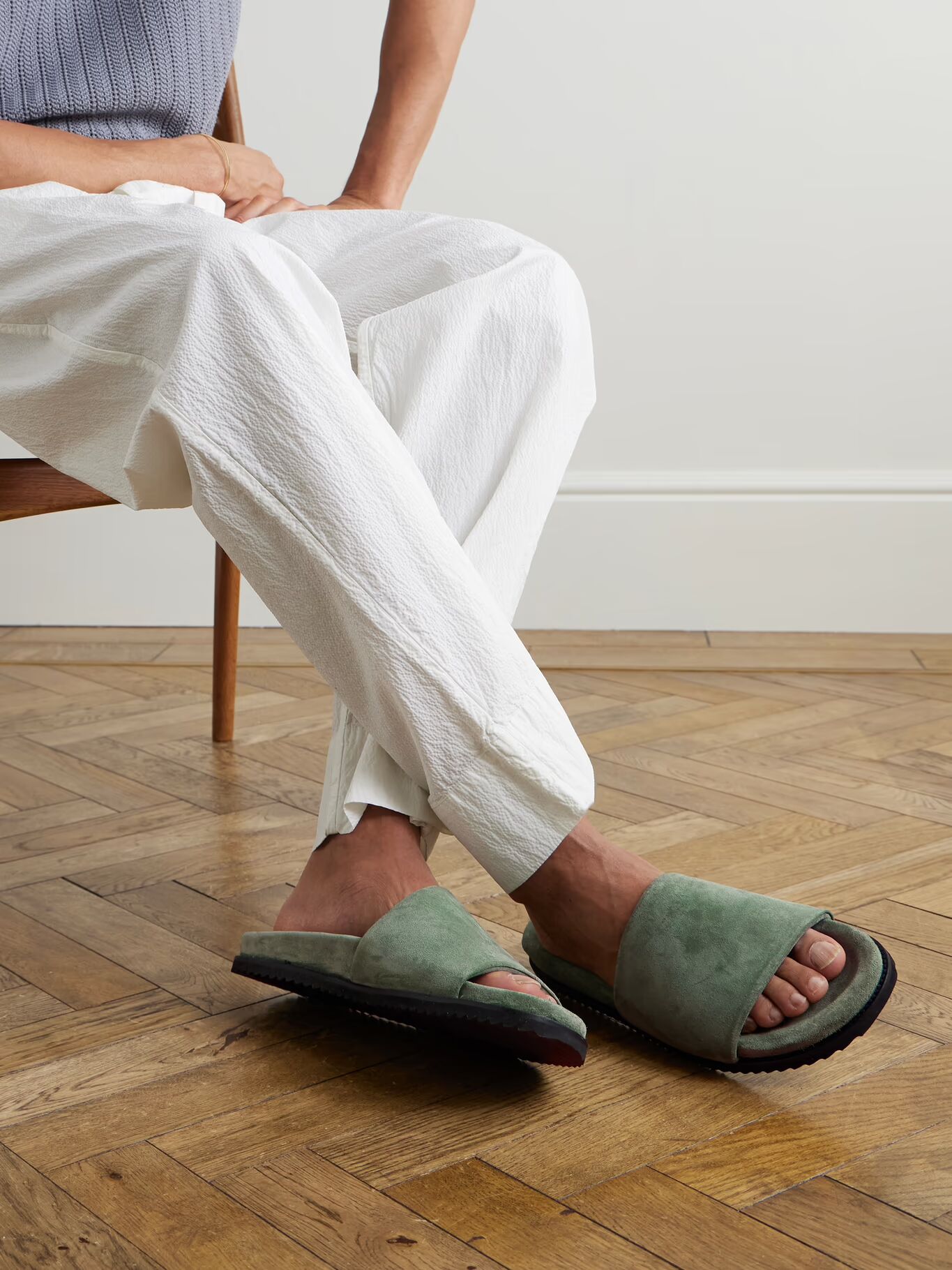 СОЗДАНО Г-НОМ ПОРТЕРОМ. Сандалии «David» г-на П. сделаны из мягкой регенерированной замши evolo, которая производится с меньшими выбросами CO2. Они имеют простой, минималистичный профиль, с толстыми ремешками и ребристыми резиновыми подошвами.