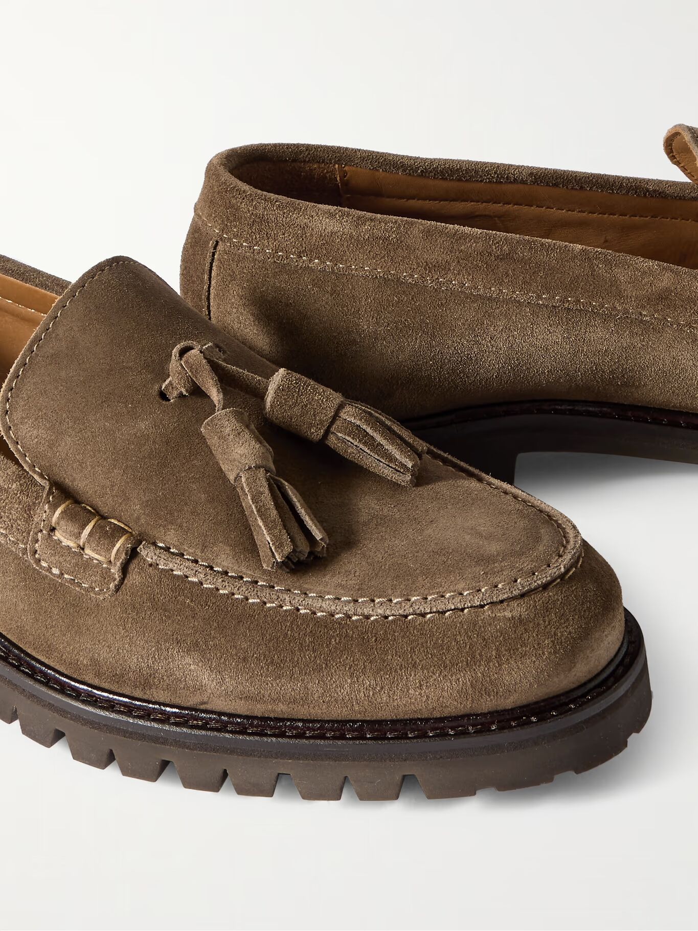 СОЗДАНО Г-НОМ ПОРТЕРОМ. При поиске элегантной обуви стоит выбрать пару, которая будет сочетаться и с повседневными образами. Лоферы с кисточками «Scott» от Mr P. сделаны из итальянской замши и оснащены кожаной подошвой с резиновыми вставками на пятке для прочности. Используйте щетку и защитный спрей, чтобы поддерживать их в идеальном состоянии.