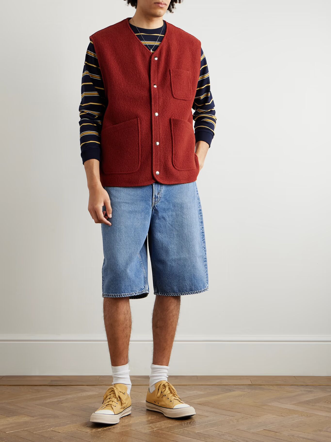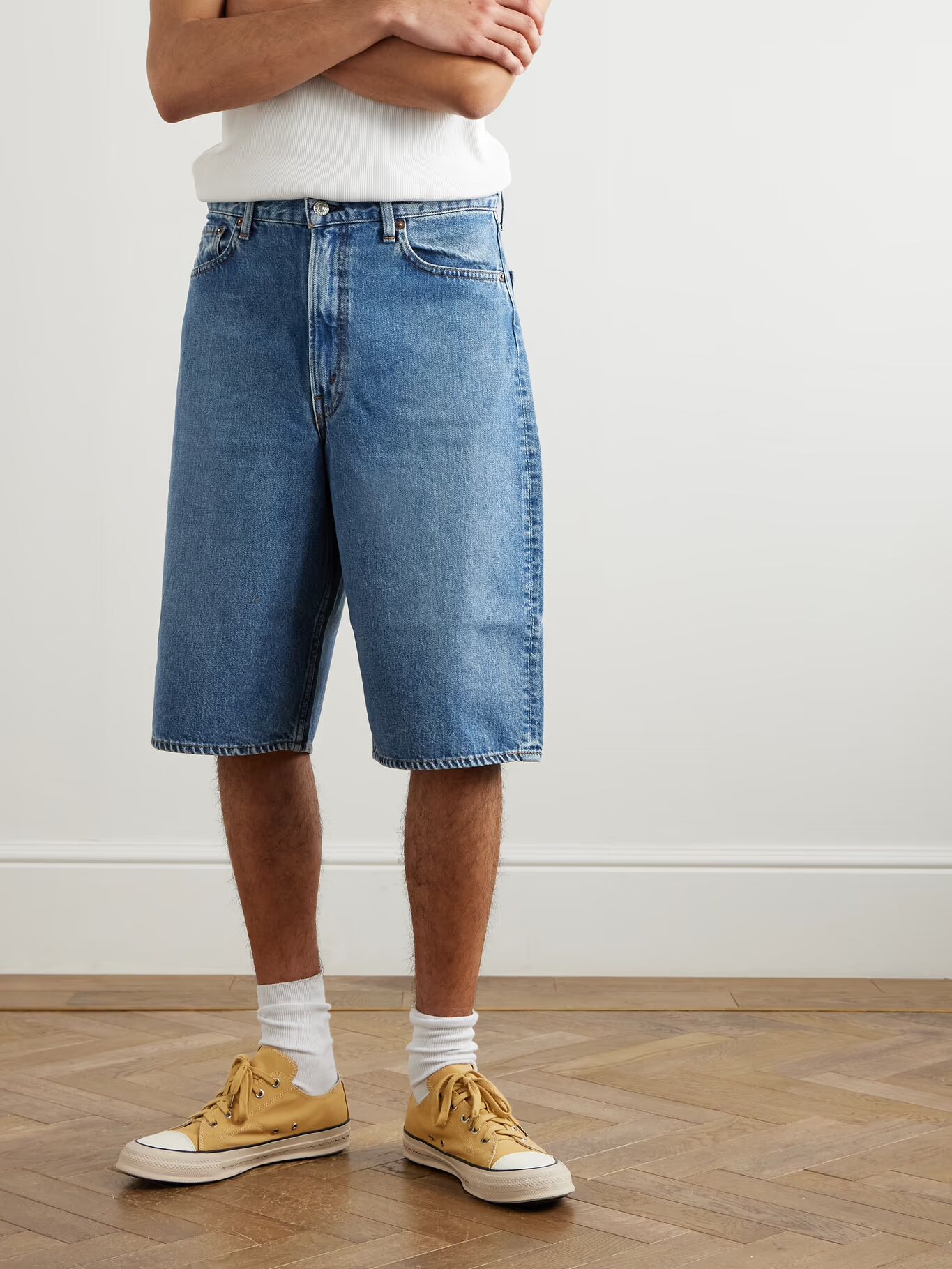 Винтажная эстетика — это жизненная сила OrSlow — японский бренд производит свои джинсы в префектуре Окаяма, используя швейные машины старой школы для аутентичного вида и ощущения. Эти шорты «Super Dads» получили свое название из-за своего кроя и представлены в выцветшем светло-голубом цвете.