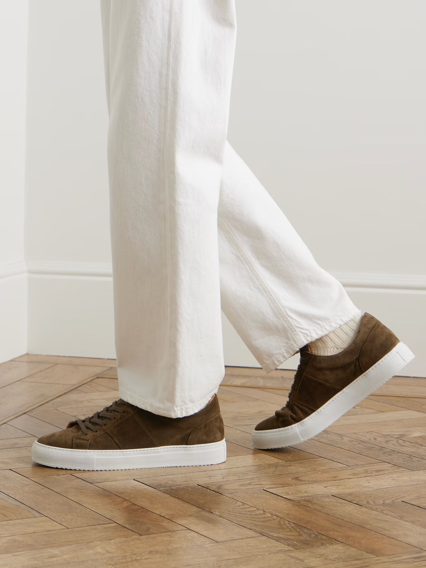 СОЗДАНО Г-НОМ ПОРТЕРОМ. Обтекаемый дизайн кроссовок «Alec» от Mr P. гарантирует, что вы сможете носить их практически с чем угодно. Эта пара изготовлена из гладкой замши с более широкой посадкой и установлена на удобные резиновые подошвы.