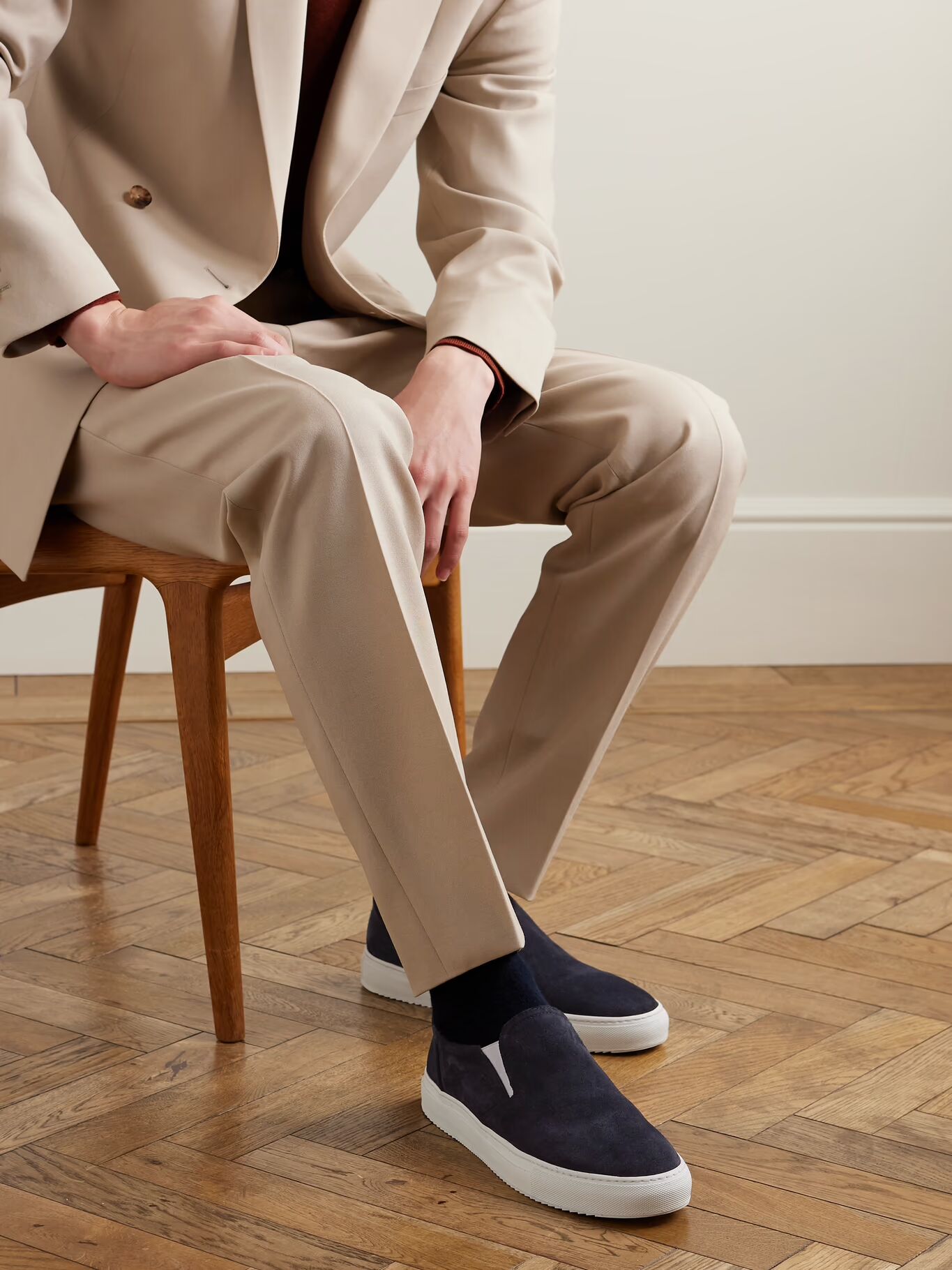 СОЗДАНО Г-НОМ ПОРТЕРОМ. Кроссовки «Larry» г-на П. имеют универсальный, обтекаемый профиль, что означает, что они подойдут ко многим повседневным нарядам. Они были изготовлены в Италии из дышащей и мягкой замши. Эластичные вставки позволяют легко надевать и снимать их.
