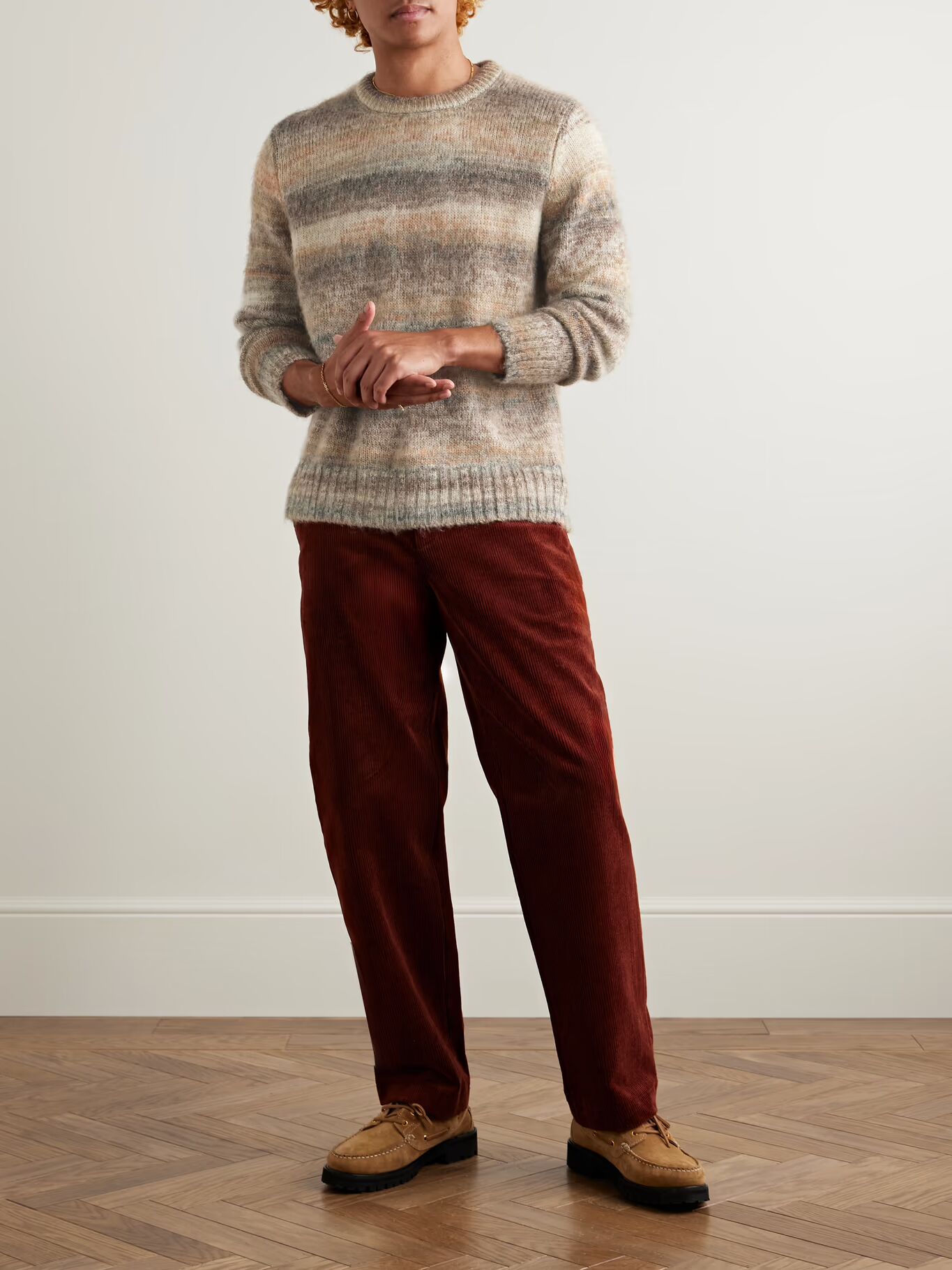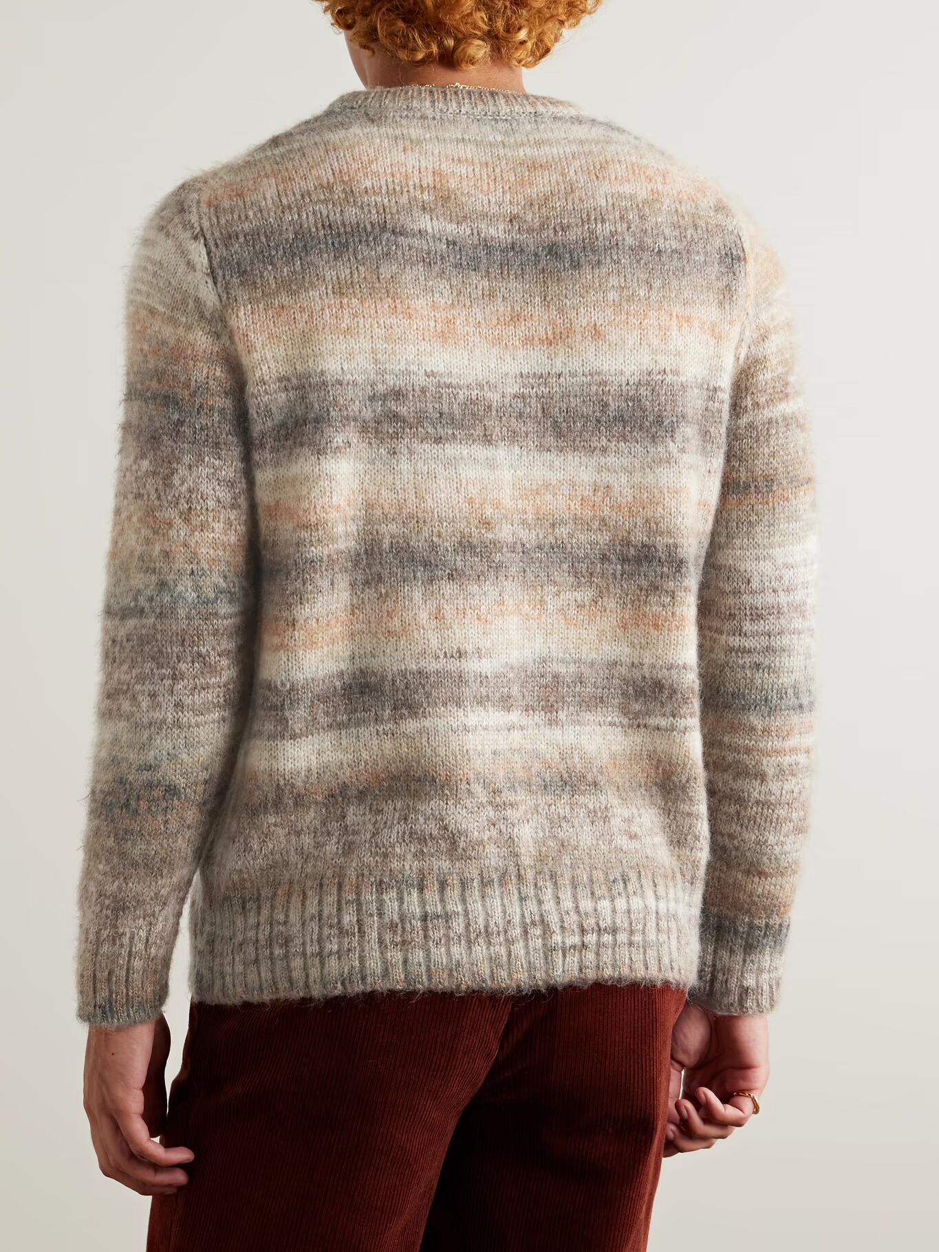 Дизайн Corridor часто демонстрирует искусное использование цвета. Этот свитер связан из мохера и окрашен в пространстве для получения приглушенного полосатого рисунка.