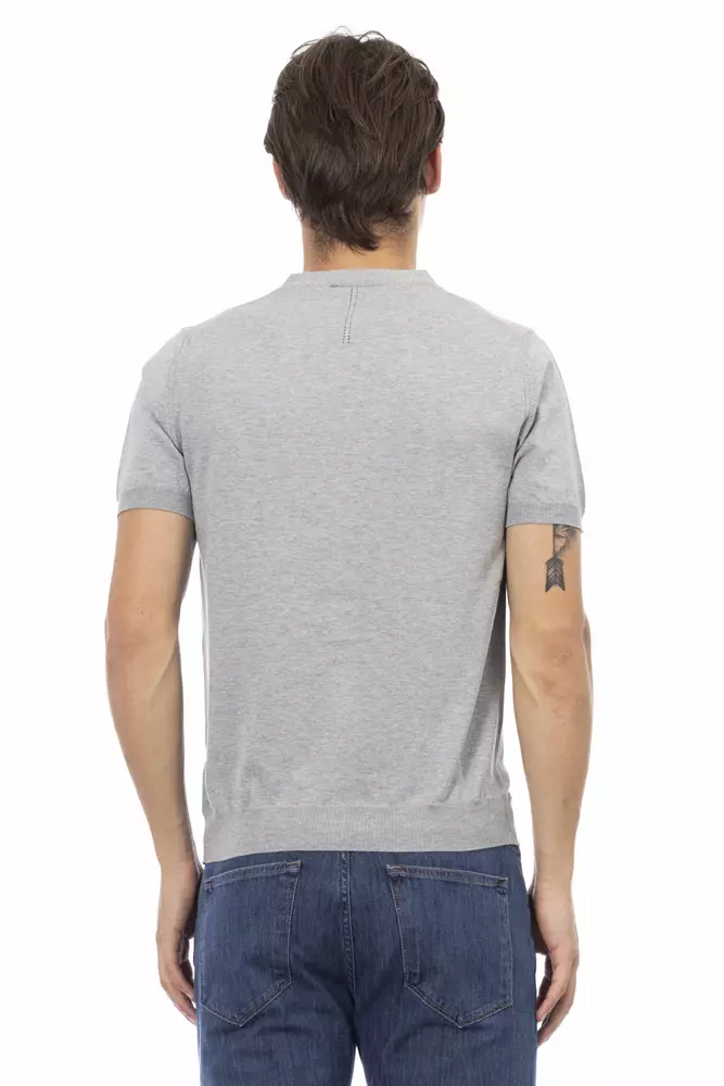 Излучайте современную элегантность с помощью свитера Baldinini Trend с V-образным вырезом, бесшовного сочетания классического стиля и современного комфорта. Тонкость серого оттенка дополняет его изысканный дизайн с короткими рукавами, делая его неотъемлемым дополнением к любому модному гардеробу. Обеспечьте идеальную посадку с помощью его гладкой застежки на пуговицы и наслаждайтесь роскошью итальянского мастерства каждый раз, когда вы надевая эту вещь.