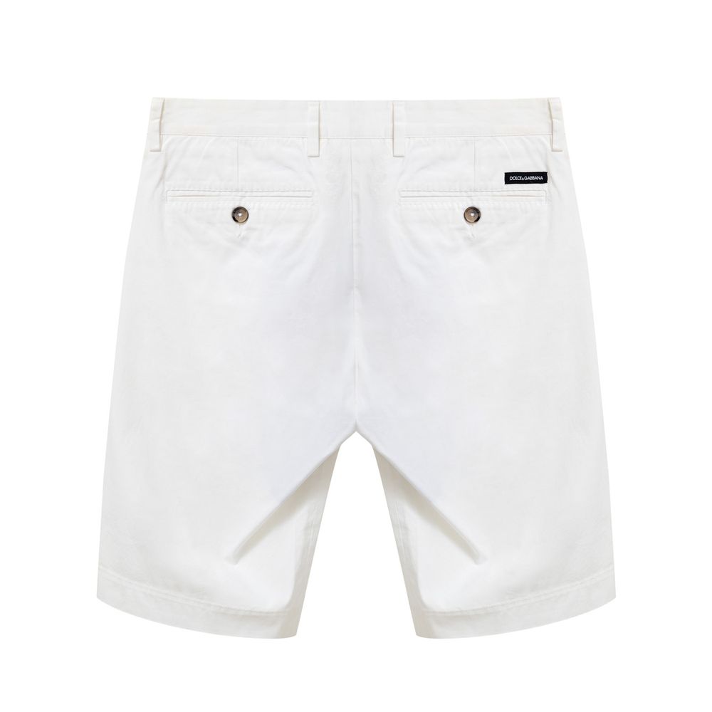 Бермуды Bianco Dolce & Gabbana. Застежка на пуговицу и закрытую молнию, два боковых прорезных кармана, два задних кармана на пуговице и контрастный логотип. Модель Regular fit, эластичная ткань. Состав: 97% хлопок, 3% эластан.