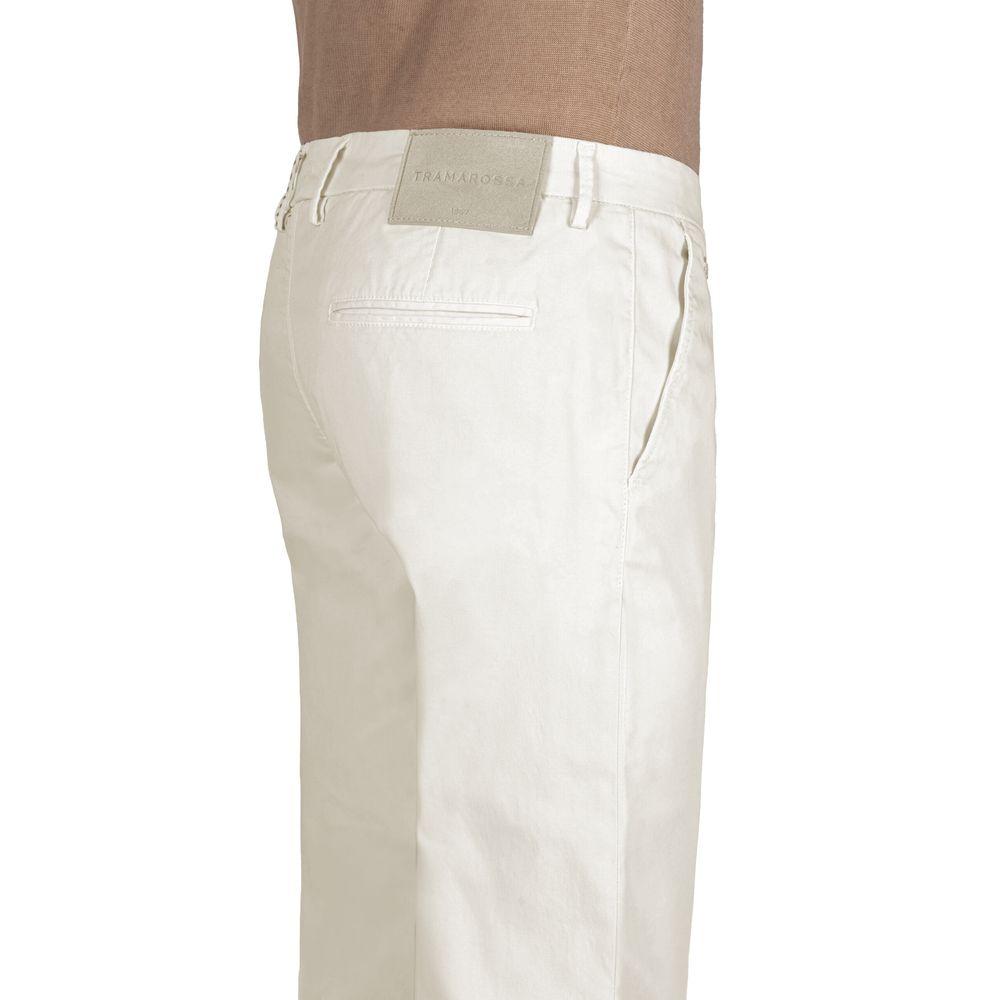 Брюки Tramarossa Alberto из слегка эластичного белого хлопка, застежка на пуговицы и молнию, два боковых прорезных кармана и два задних кармана, замшевая нашивка сзади.