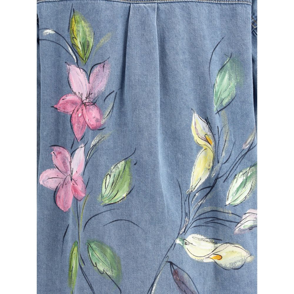 Куртка-рубашка Ellas denim — универсальная и изысканная вещь с классическим воротником, который добавляет нотку элегантности. Скрытая застежка на пуговицы спереди придает чистый, изысканный дизайн, а два накладных кармана спереди обеспечивают практичность. Нарисованные цветочные узоры спереди и сзади придают изделию художественный и свежий вид, делая эту куртку идеальной для повседневного, но оригинального образа.