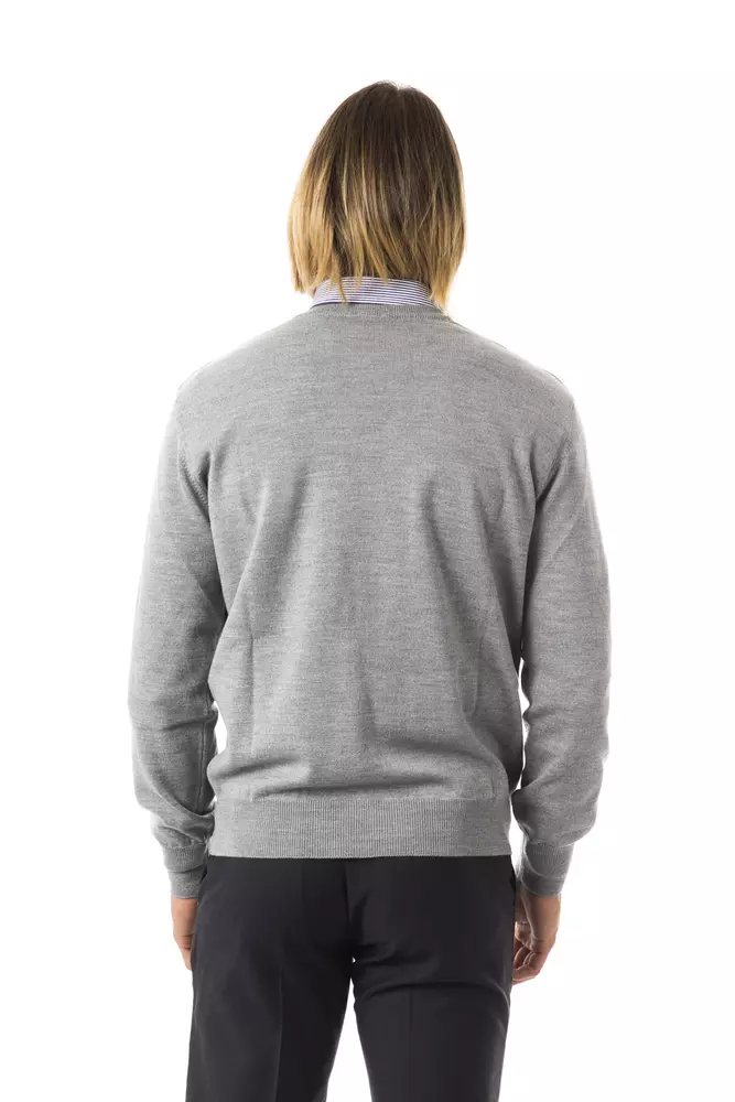 Почувствуйте итальянское мастерство с вышитым шерстяным свитером с V-образным вырезом Uominitalianis, стильным заявлением для модного джентльмена. Этот серый свитер, излучающий изысканность с его тонкой вышивкой и классическим дизайном V-образного выреза, является универсальным дополнением к любому гардеробу. Идеально сочетаясь с повседневной и официальной одеждой, сделайте смелое заявление, воплощая суть итальянской элегантности.