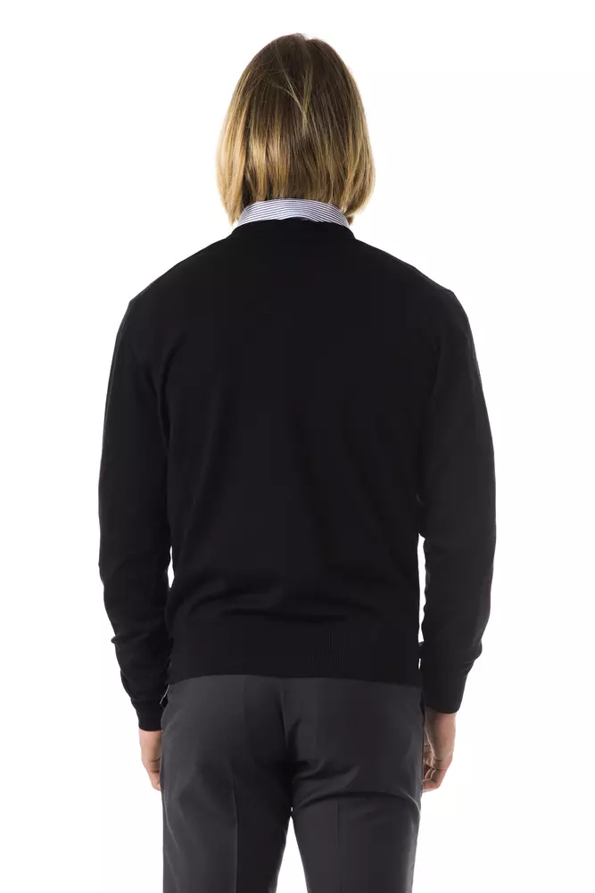 Uominitaliani представляет собой воплощение вечной элегантности с этим изысканным свитером с V-образным вырезом, тщательно изготовленным из мягчайшей шерсти мериноса extrafine. Сложная вышивка источает современный шарм, добавляя нотку смелой изысканности в ваш гардероб. Идеально подходящий для тех, кто стремится сочетать традиционное мастерство с современным дизайном, этот черный свитер — must-have для взыскательного джентльмена, который без усилий привлекает внимание.