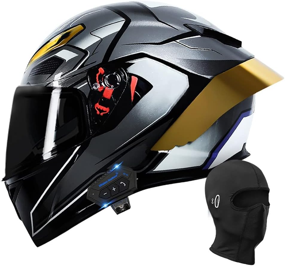 Шлем мотоциклетный ACLFF Bluetooth с подшлемником, черный / золотой