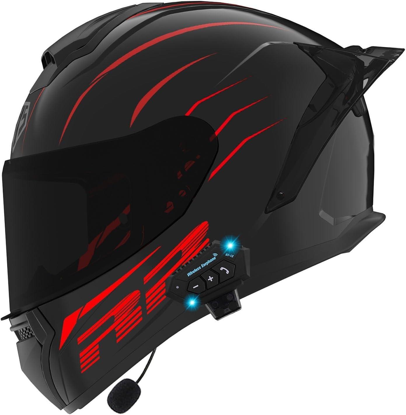 Шлем мотоциклетный Gyufmgs Bluetooth Full Face, черный / красный