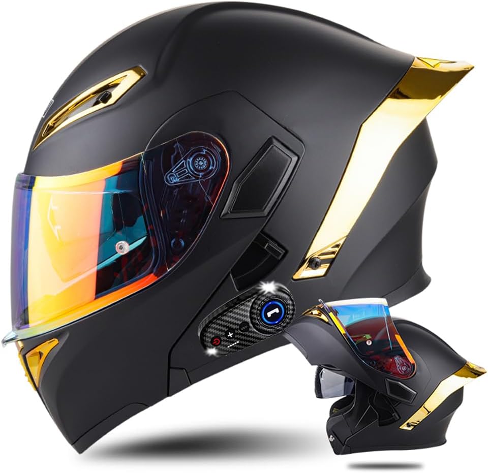 Шлем мотоциклетный Yagteycll Bluetooth, черный / золотой