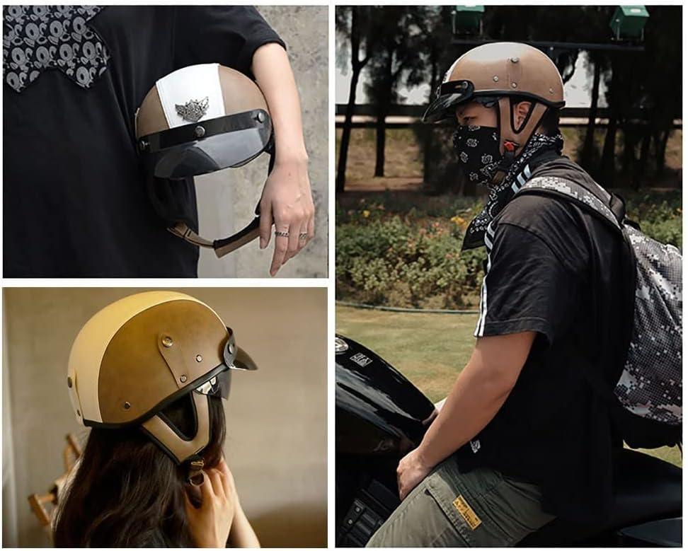 ТЕРМОУСАДОЧНАЯ ЛИНЗА: кожаный полушлем немецкого стиля с защитными очками и износостойкой поликарбонатной линзой высокой четкости, ветрозащитный и пылезащитный. Подходит для мотоциклов, мопедов, велосипедов, круизеров, вертолетов, скутеров, скейтбордов и многого другого.