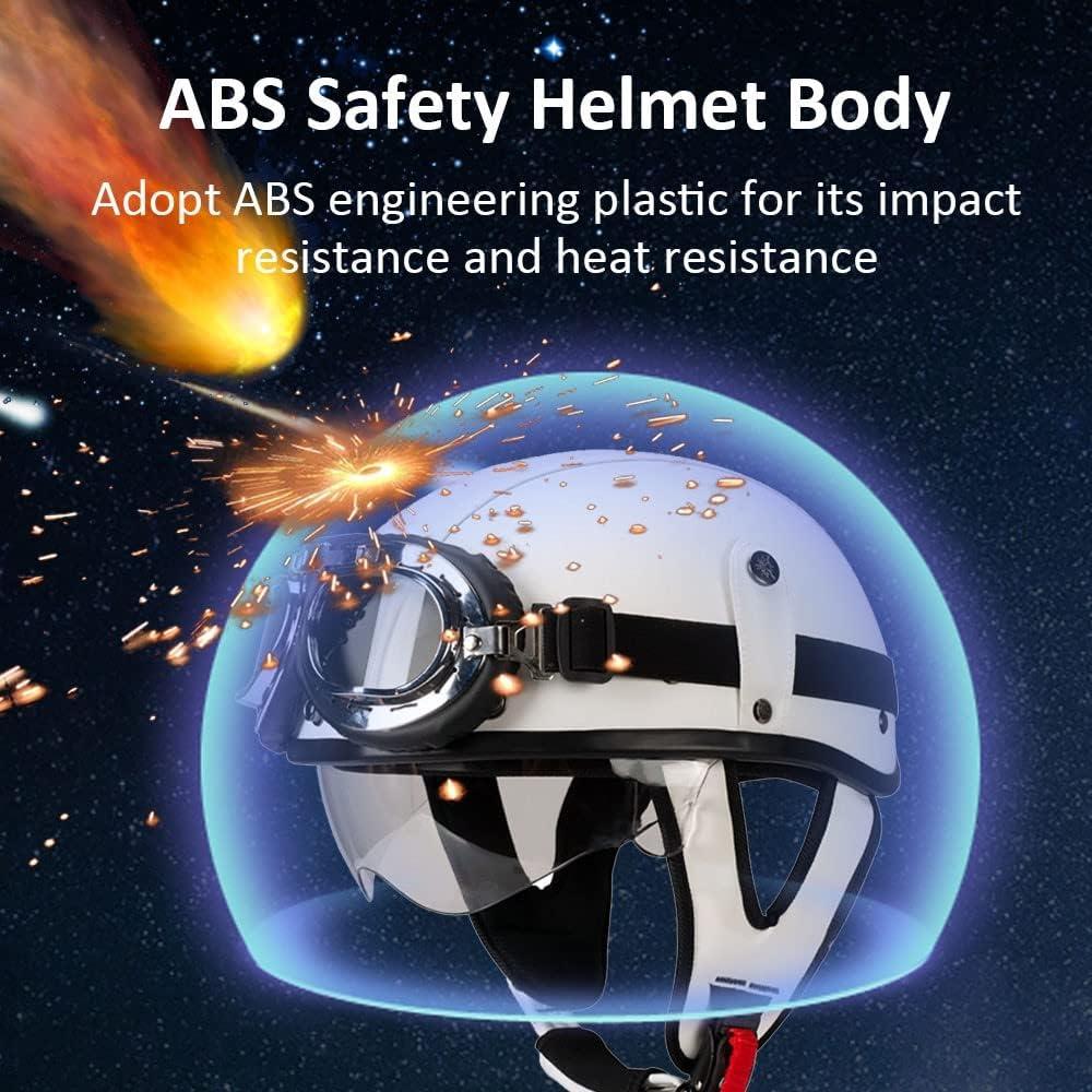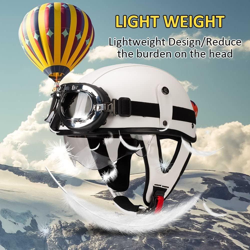 ТЕРМОУСАДОЧНАЯ ЛИНЗА: кожаный полушлем немецкого стиля с защитными очками и износостойкой поликарбонатной линзой высокой четкости, ветрозащитный и пылезащитный. Подходит для мотоциклов, мопедов, велосипедов, круизеров, вертолетов, скутеров, скейтбордов и многого другого.