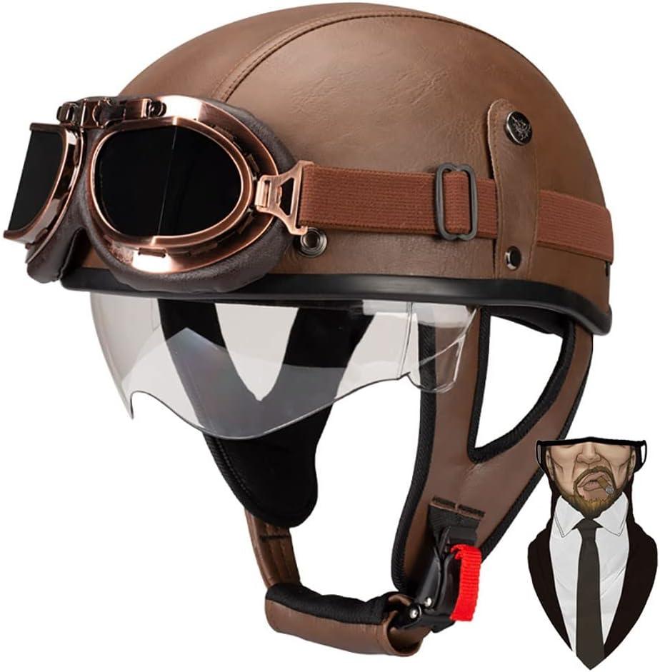 ТЕРМОУСАДОЧНАЯ ЛИНЗА: кожаный полушлем немецкого стиля с защитными очками и износостойкой поликарбонатной линзой высокой четкости, ветрозащитный и пылезащитный. Подходит для мотоциклов, мопедов, велосипедов, круизеров, вертолетов, скутеров, скейтбордов и многого другого.