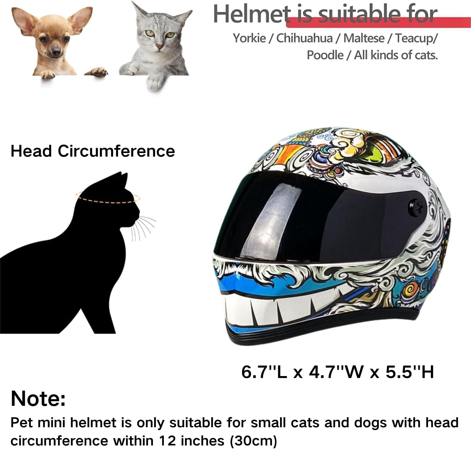 для мелких домашних животных: Размеры шлема составляют 6,7 Д x 4,7 Ш x 5,5 В дюймов, он подходит для домашних животных с окружностью головы в пределах 12 Он идеально подходит для взрослых кошек и щенков, но не подходит для средних и крупных собак.