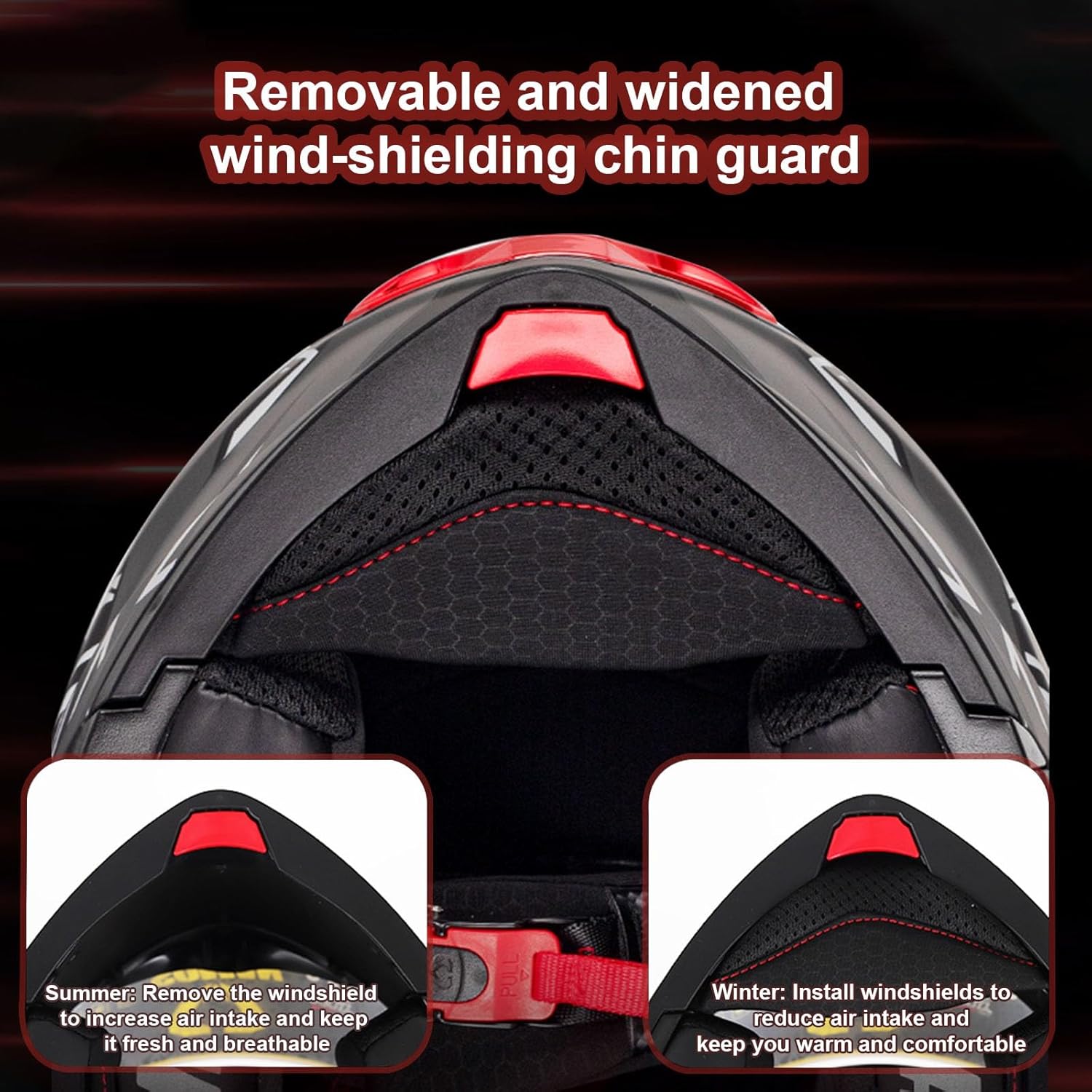 для подбородка и внутренняя подкладка Мотоциклетный шлем Bluetooth имеет быстросъемный ремешок для подбородка, что особенно удобно для тех, кто хочет, чтобы в одном устройстве были как простая в использовании пряжка, так и подбородок, поднимаемый для обеденных перерывов во время поездок. Материал внутренней подкладки удобный, мягкий и приятный для кожи, съемный и моющийся, легко надевать и снимать