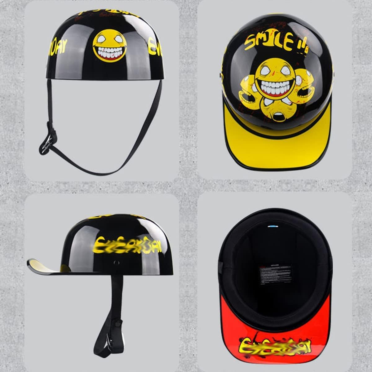 РЕТРО: шлем имеет модный ретро-дизайн полушлема, напоминающий ранние шлемы-бейсболки. Он поставляется в матово-черном или глянцевом черном цвете с крутыми узорами. Этот шлем для верховой езды будет стильно смотреться с любым мотоциклом / скутером / уличным байком / круизером / снегоходом / чоппером / балансиром.