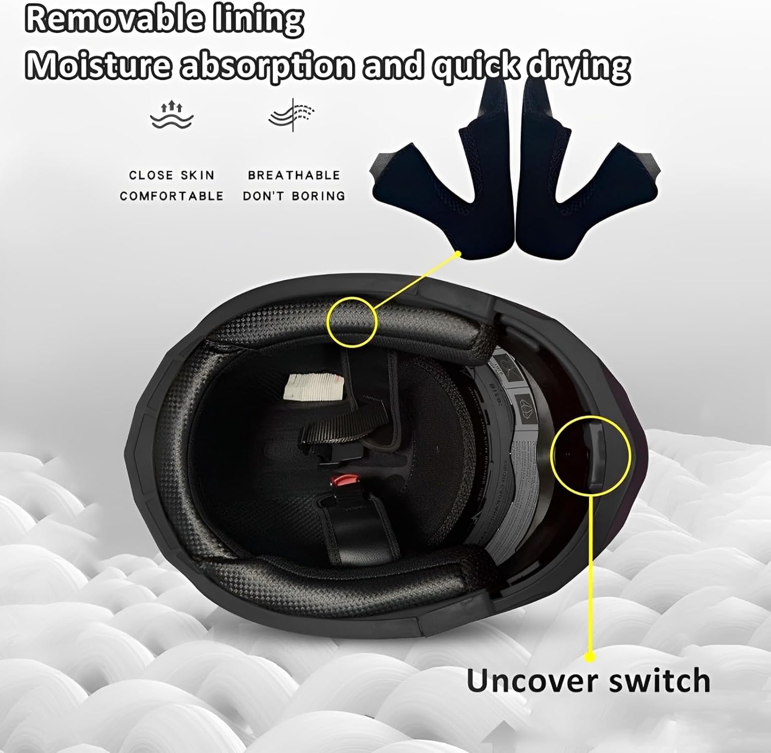 Эластичная губка удобно обхватывает голову и обеспечивает достаточную поддержку, не оказывая слишком большого давления на щеки. Внутренняя подкладка полностью съемная и моющаяся, чтобы поддерживать шлем в чистоте. Включает в себя потовпитывающий головной убор, чтобы предотвратить загрязнение подкладки потом, сократить количество чисток подкладки и продлить срок ее службы.