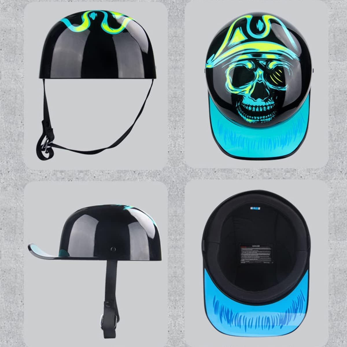 РЕТРО: шлем имеет модный ретро-дизайн полушлема, напоминающий ранние шлемы-бейсболки. Он поставляется в матово-черном или глянцевом черном цвете с крутыми узорами. Этот шлем для верховой езды будет стильно смотреться с любым мотоциклом / скутером / уличным байком / круизером / снегоходом / чоппером / балансиром.