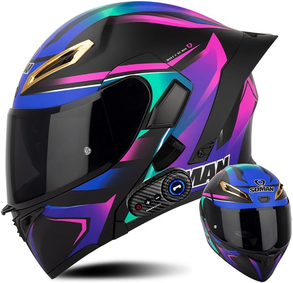 Шлем мотоциклетный TONCXRW Bluetooth, черный / синий / розовый