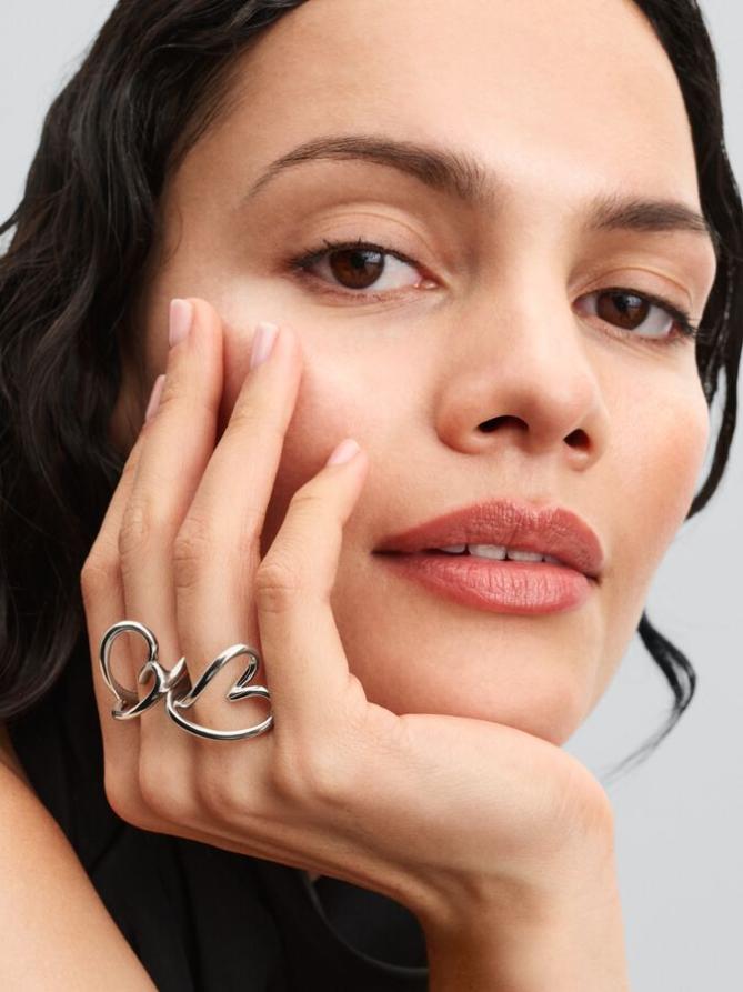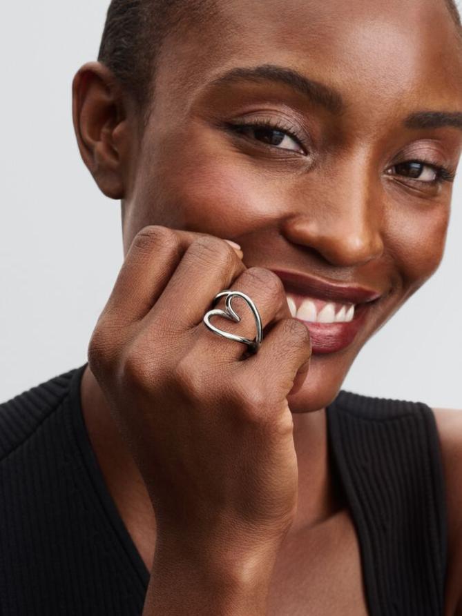Соедините любовь и природу с кольцом в виде сердца органичной формы. Тонко волнистый ободок из стерлингового серебра переходит в ажурное сердечко несовершенной формы, которое спереди горизонтально повторяет форму пальца. При ношении только средняя часть сердечка касается пальца, в то время как остальная часть кольца приподнята. Выполненное в слегка увеличенном размере, это скульптурное кольцо в виде сердца создает изящный и современный образ и прекрасно сочетается с другими минималистичными стилями.