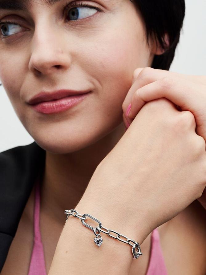 Подберите себе мини-брелок Pandora ME с замочной скважиной в виде сердца. Этот серебряный брелок украшен прозрачным кубическим цирконием в форме сердца с черной эмалью в виде замочной скважины, вдохновленной символикой тату. За камнем находится вырез в форме сердца, через который проникает свет. Соедините его с мини-брелоком Pandora ME Key, который символизирует те отношения, которые просто "щелкают", или наденьте его сами и подарите человеку, который идеально подходит. Этот мини-брелок с подвесками может быть стилизован под брелки Pandora Moments и открывающиеся звенья на держателях Pandora ME.