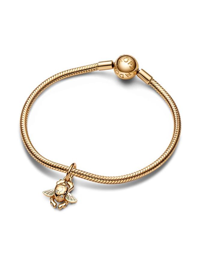 Отпразднуйте 30-летие диснеевского "Аладдина" с Disney x Pandora. Этот 14-каратный позолоченный амулет вдохновлен золотым жуком-скарабеем, ключом к Пещере чудес и ее опасным сокровищам, где Аладдин, как известно, встречает Ковер и находит лампу Джинна. Подвеска украшена круглым кубическим цирконием бриллиантовой огранки и крылышками из эмали в стиле модерн, которые действительно двигаются вверх и вниз, создавая чарующий эффект. Повесьте этот символический амулет с изображением жука-скарабея от Disney "Аладдин" на свой любимый брелок и встречайте мир с любимыми историями рядом.