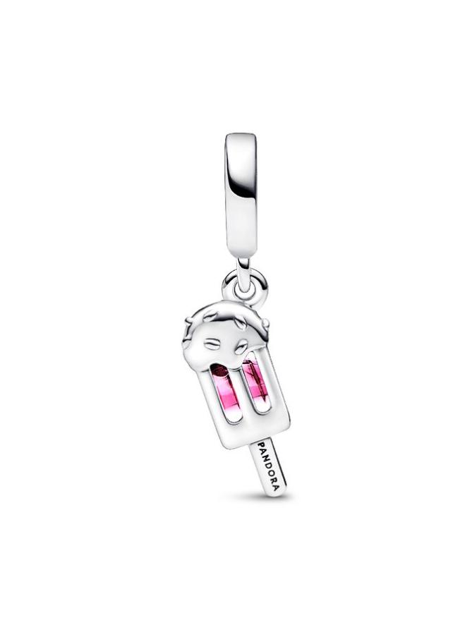 Сладкое угощение для того, кому принадлежит ваше сердце. Подарите путешествие в страну конфет с помощью шарма Popsicle Dangle Charm, вдохновленного вселенной поп-арта и насыщенных цветов. Этот серебряный брелок украшен фруктовым мороженым из муранского стекла градиентного розового цвета и белой эмалевой глазурью, нанесенной вручную. Глазурь украшена рельефной полированной посыпкой и украшена двумя фианитами Aurora Borealis, которые переливаются прозрачными, розовыми и голубыми тонами в зависимости от того, как на них попадает свет. Ряд паве на палочке от эскимо придает немного блеска этому игривому современному ювелирному изделию Pandora.