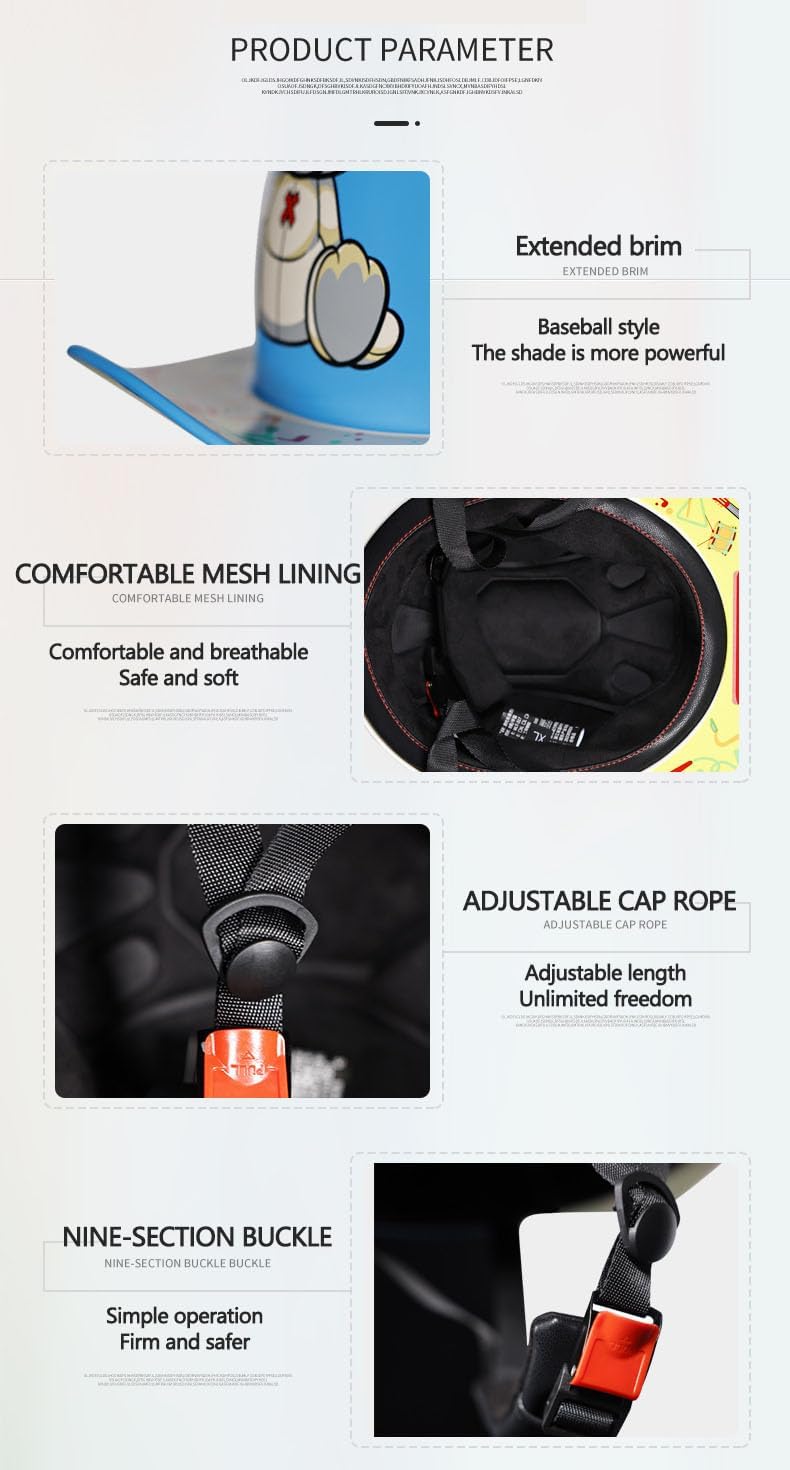 Детский шлем YAGTEYCLL имеет модный ретро-дизайн полушлема, напоминающий ранние шлемы-бейсболки. Этот шлем для верховой езды будет стильно смотреться с любым мотоциклом / скутером / уличным байком / круизером / снегоходом / чоппером / балансиром.