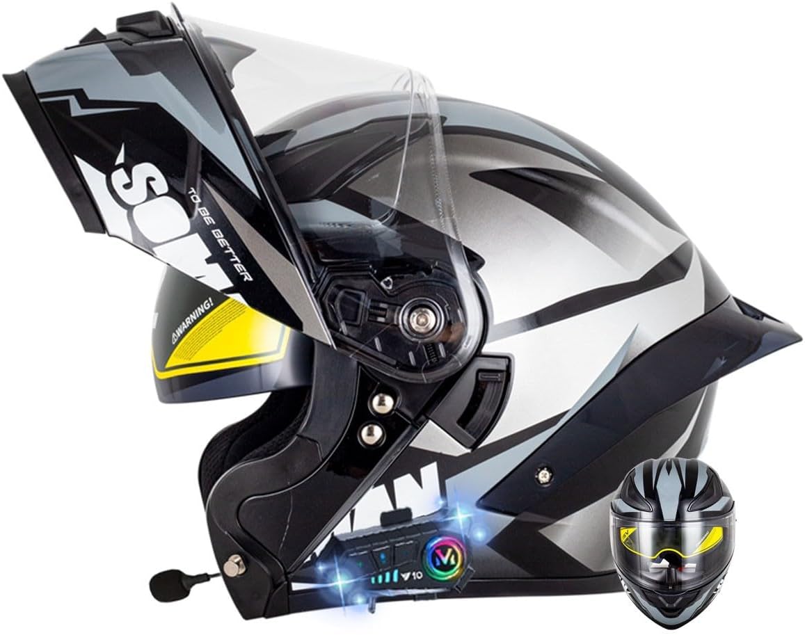 Безопасность сертифицированного шлема Bluetooth: шлем Bluetooth module шлем мотоцикла соответствует стандарту безопасности DOT/ECE и получил все сертификаты безопасности дорожного движения в Европе и США. Высокопрочная оболочка ABS и амортизирующий слой EPS могут эффективно защитить вашу безопасность