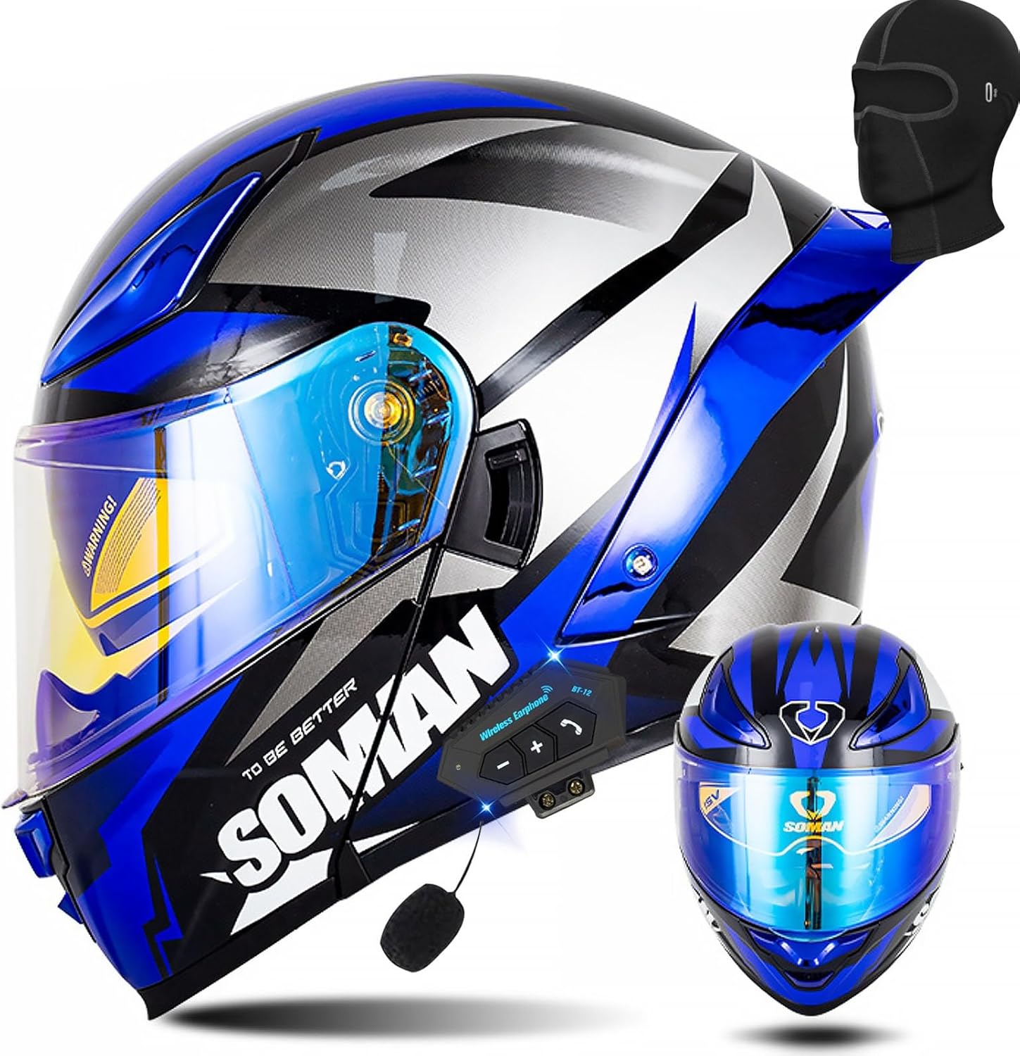 Шлем Bluetooth Motorcycle Flip-Up Helme соответствует требованиям стандарта безопасности DOT FMVSS 218, шлем включает в себя 3 слоя защиты: корпус из противоударного материала ABS, эластичную амортизацию EPS высокой плотности, мягкую подкладку, приятную для кожи, и дышащую губку; потребуется немного времени, чтобы привыкнуть к полностью закрытой голове, но с ней вы почувствуете себя намного безопаснее