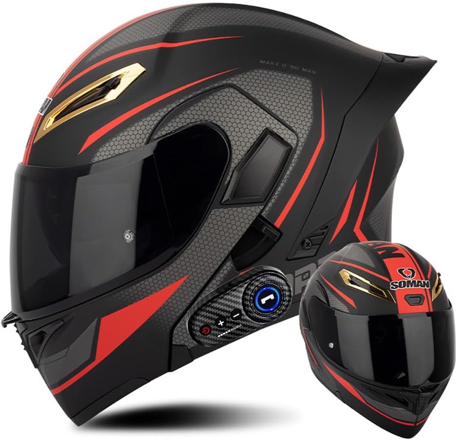 Шлем мотоциклетный TONCXRW Bluetooth, черный / красный
