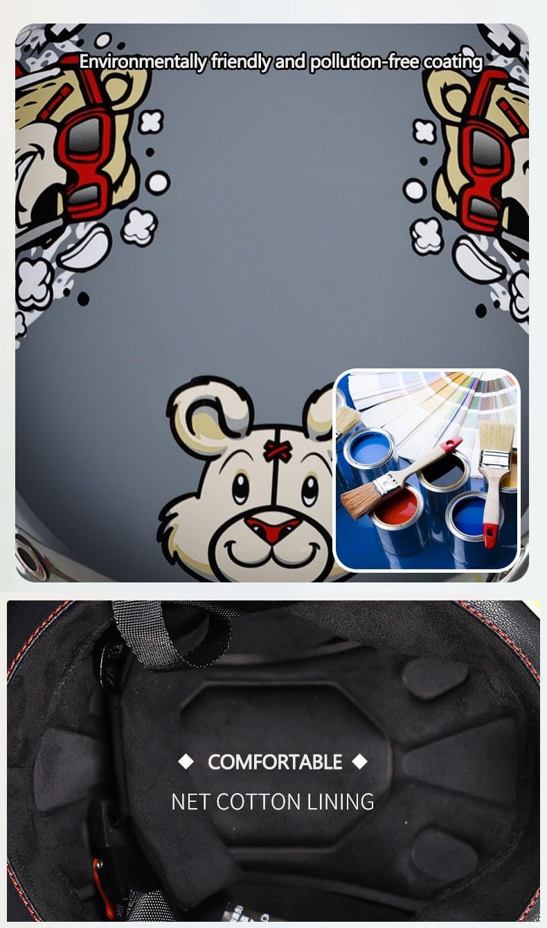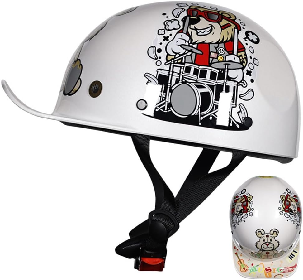 Детский шлем YAGTEYCLL имеет модный ретро-дизайн полушлема, напоминающий ранние шлемы-бейсболки. Этот шлем для верховой езды будет стильно смотреться с любым мотоциклом / скутером / уличным байком / круизером / снегоходом / чоппером / балансиром.