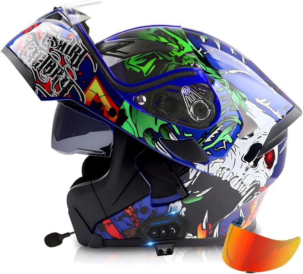 коммуникационный шлем DOT Motorcycle Helmet: он безопасен и удобен при совершении звонков без помощи рук, прослушивании стереомузыки и голосовых подсказок GPS-навигации через Bluetooth по беспроводной связи. Качество стереобасового объемного Звука, автоматический ответ на звонки, прослушивание песен, встроенное FM-радио, активное шумоподавление во время звонков.