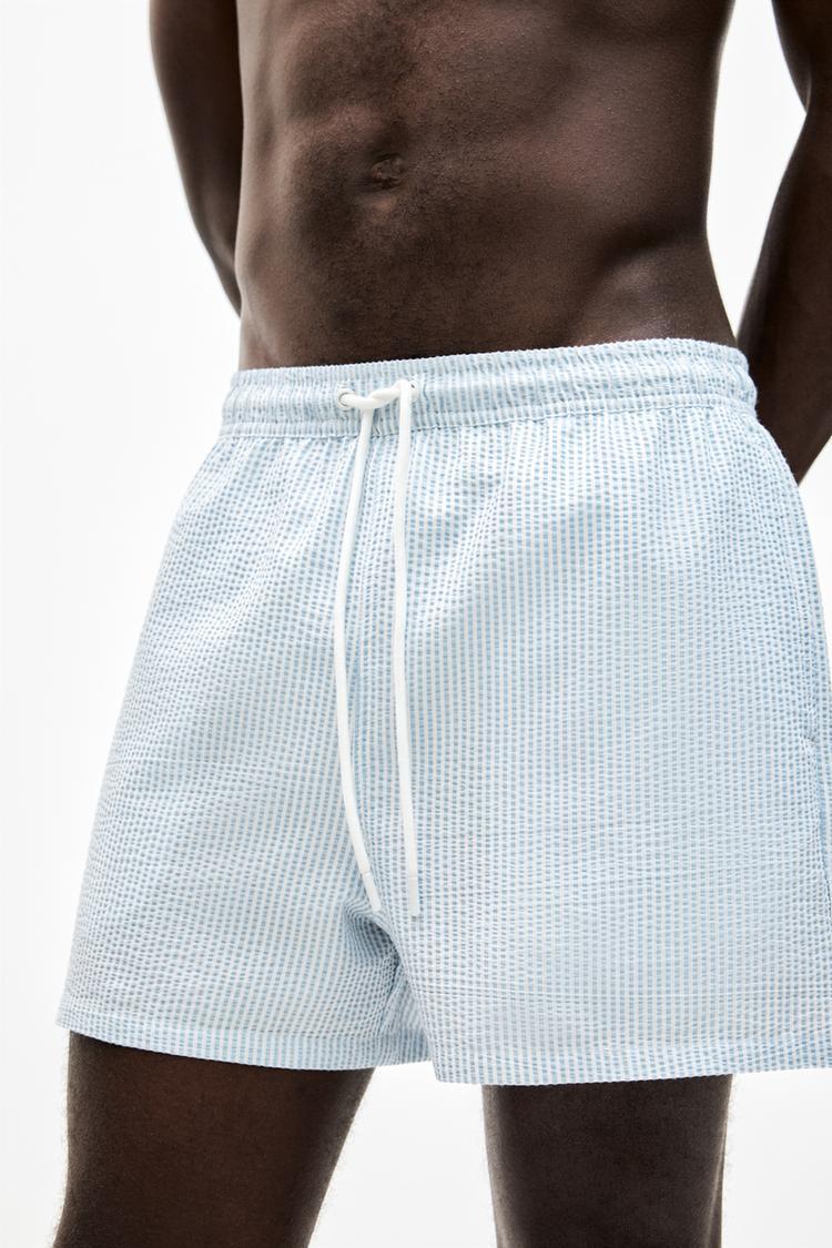 Плавки полосатые из ткани сирсакер Pull And Bear, синий