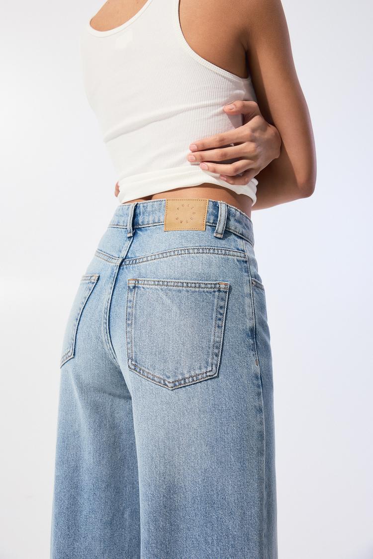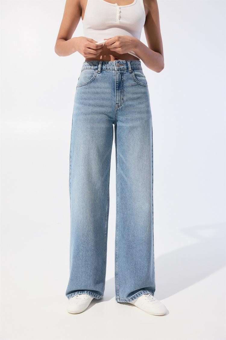 Джинсы с высокой талией и широкими штанинами Pull And Bear, синий 6 101₽