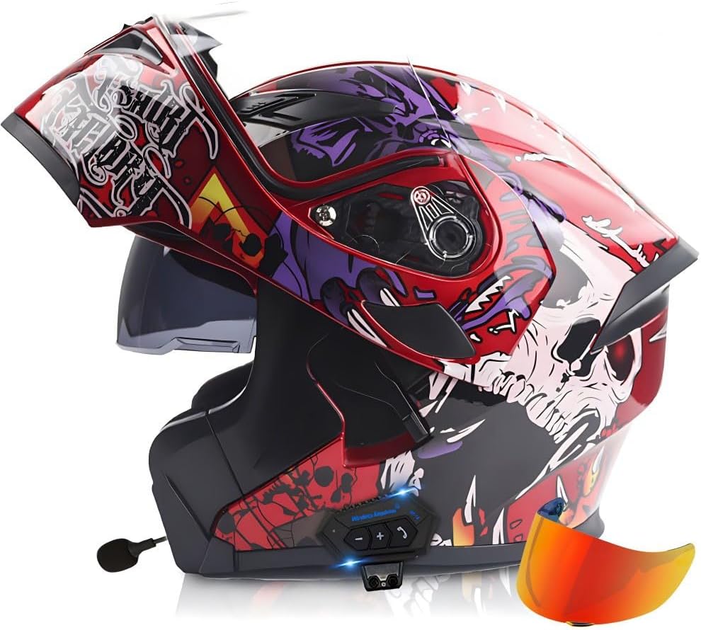 коммуникационный шлем DOT Motorcycle Helmet: он безопасен и удобен при совершении звонков без помощи рук, прослушивании стереомузыки и голосовых подсказок GPS-навигации через Bluetooth по беспроводной связи. Качество стереобасового объемного Звука, автоматический ответ на звонки, прослушивание песен, встроенное FM-радио, активное шумоподавление во время звонков.