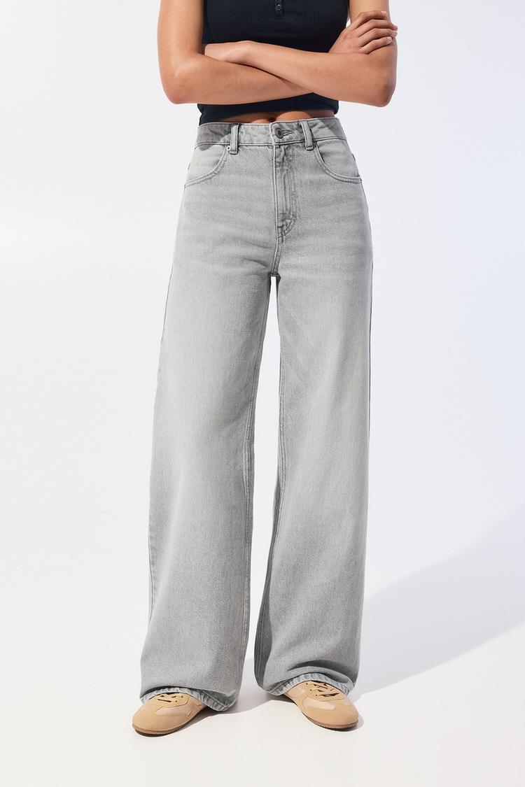 Джинсы с высокой талией и широкими штанинами Pull And Bear, серый 5 382₽