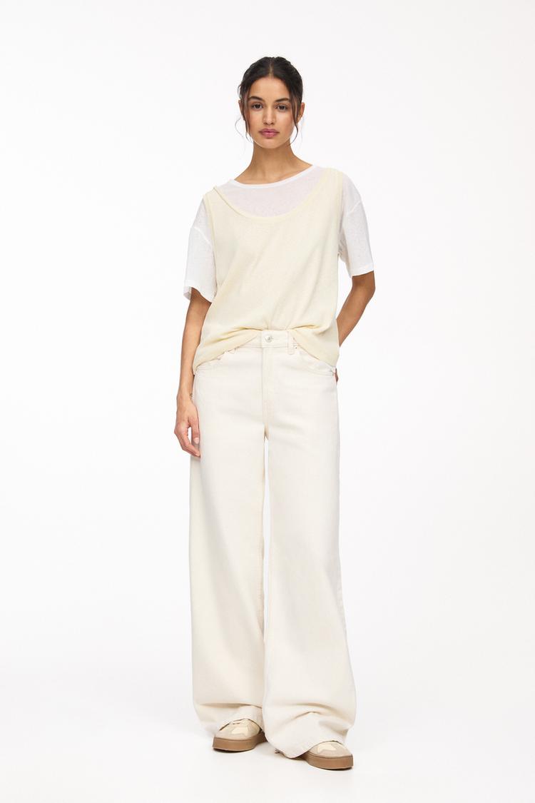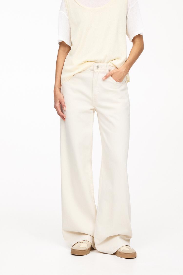 Джинсы с высокой талией и широкими штанинами Pull And Bear, экрю