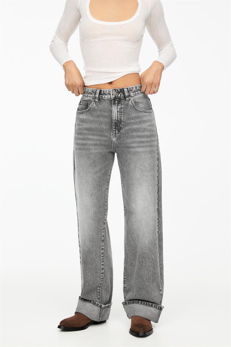 Прямые мешковатые джинсы с отворотами Pull And Bear, серый