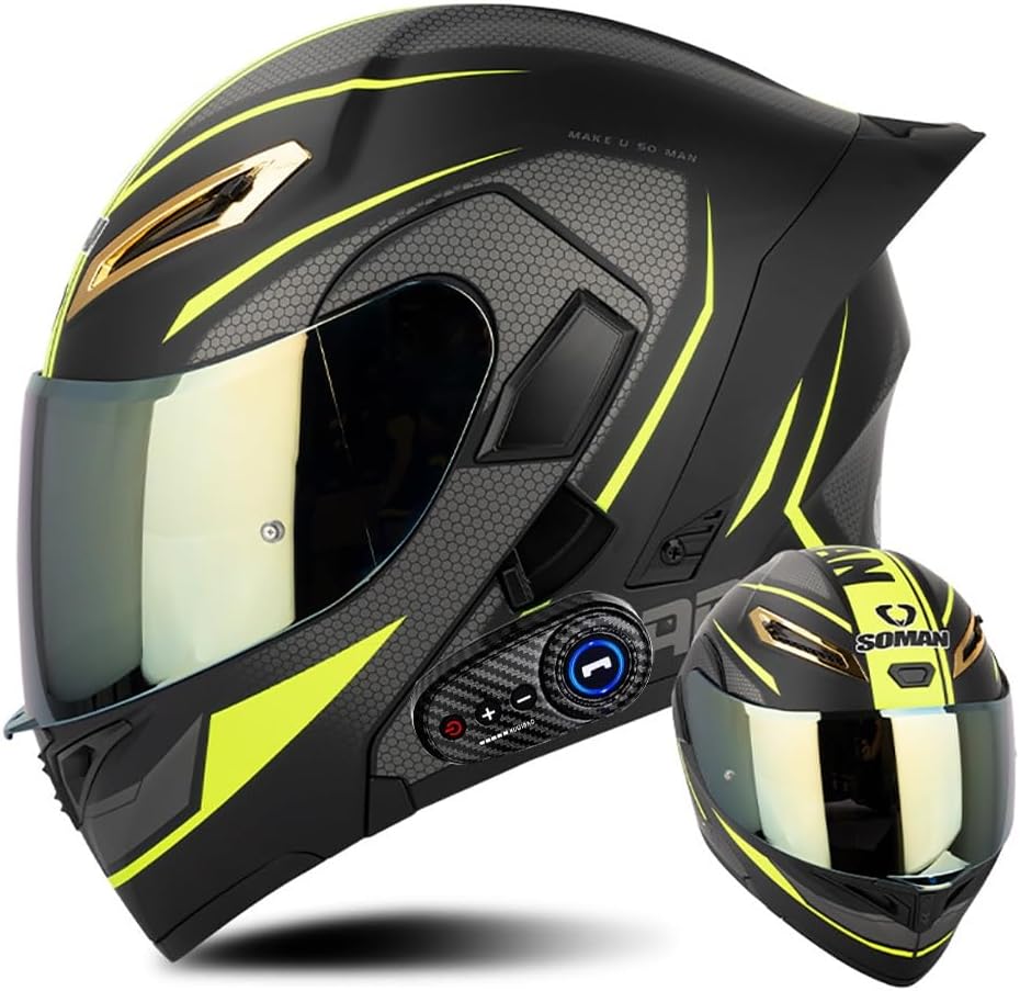 Шлем TONCXRW Motorcycle Bluetooth, черный / зеленый