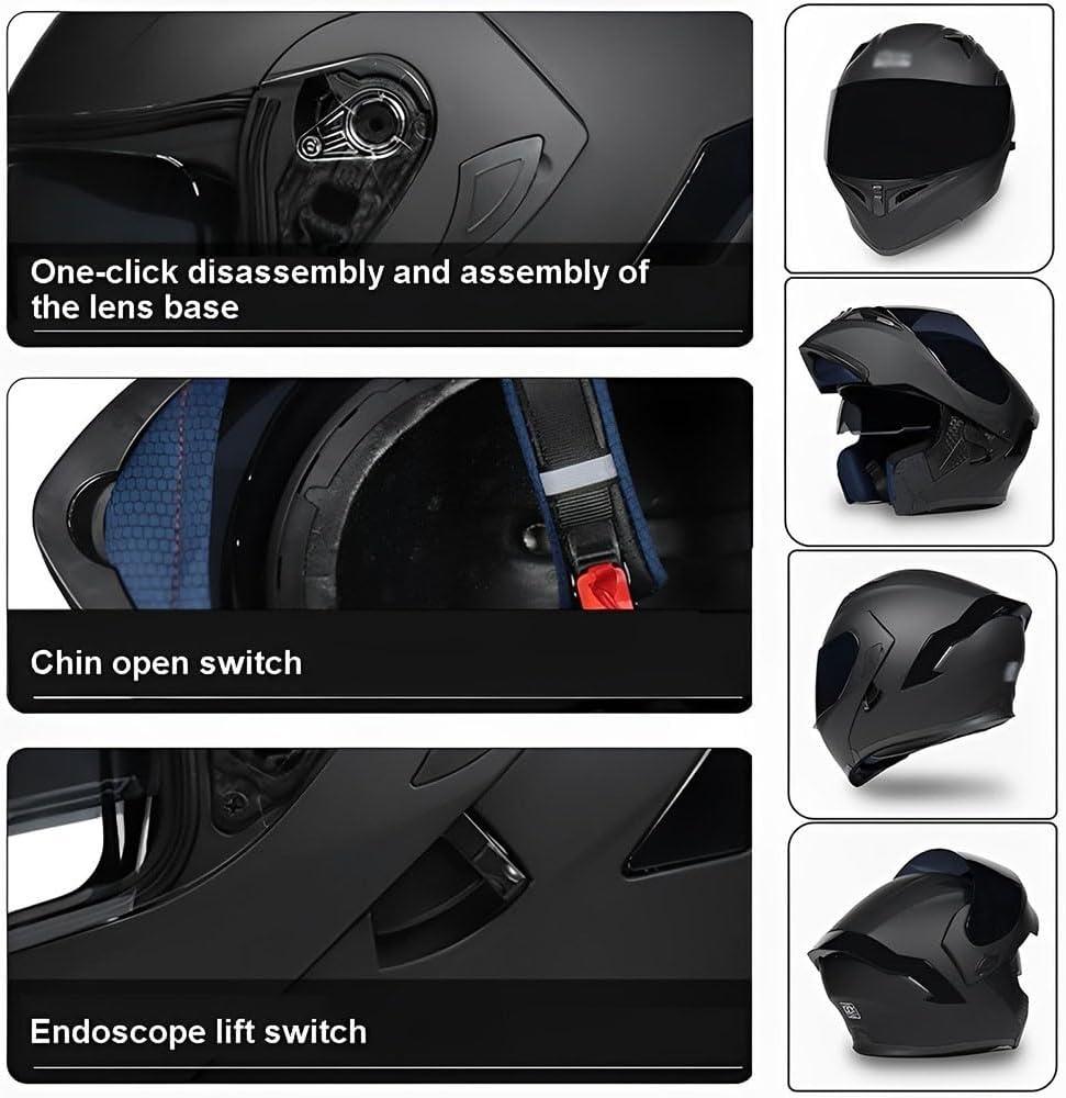 Сертификация безопасности: мотоциклетный шлем Flip-Up соответствует требованиям стандарта DOT FMVSS 218, что позволяет поддерживать безопасность шлема при сохранении веса. Каждая партия мотоциклетных шлемов прошла контроль качества, чтобы гарантировать высочайшее качество и наилучший опыт.