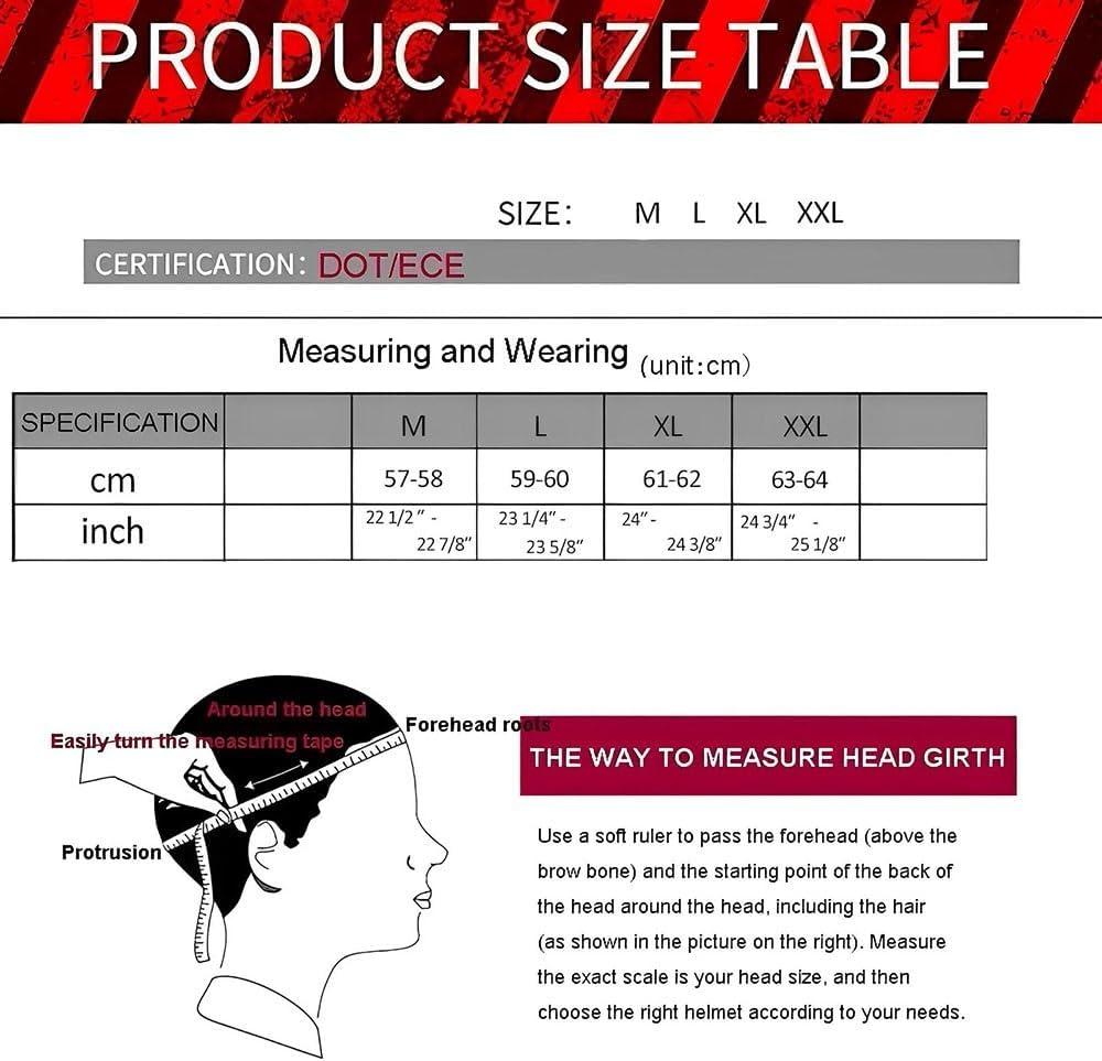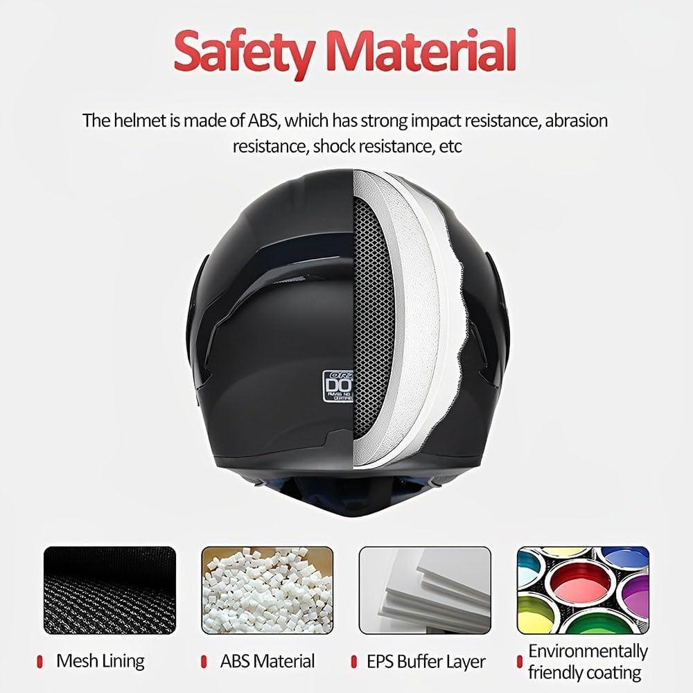 Сертификация безопасности: мотоциклетный шлем Flip-Up соответствует требованиям стандарта DOT FMVSS 218, что позволяет поддерживать безопасность шлема при сохранении веса. Каждая партия мотоциклетных шлемов прошла контроль качества, чтобы гарантировать высочайшее качество и наилучший опыт.