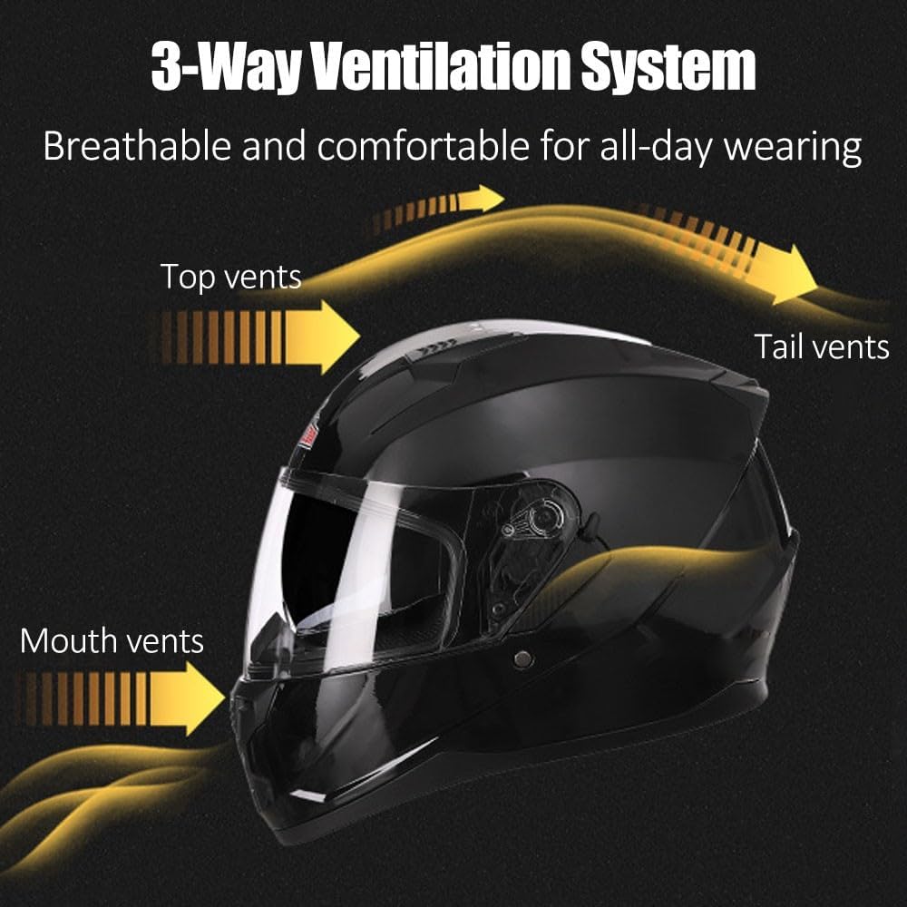 Этот одобренный DOT Мотоциклетный шлем с высокопрочным корпусом из ABS и амортизацией EPS, со встроенным Bluetooth 5.3 обеспечивает превосходную ударопрочность (легкая конструкция весом 1,75 кг). Идеально подходит для городских поездок или длительных поездок.