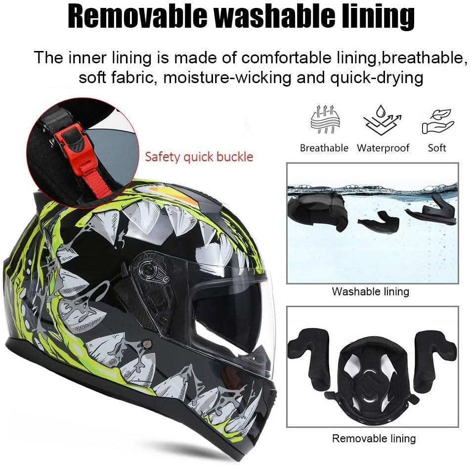 Подключение двух устройств: мотоциклетный шлем Bluetooth с аккумулятором 1000 мАч поддерживает одновременное сопряжение с 2 (звонки/музыка/GPS). Шумоподавляющий микрофон обеспечивает кристально чистую связь даже на скорости 65 миль в час. Включает выдвижной солнцезащитный козырек — ваше комплексное решение для дневных и ночных приключений.