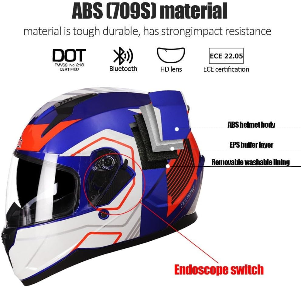 Система визора: Ощутите сверхширокий обзор на 190° через устойчивую к царапинам внешнюю линзу HD + встроенный выдвижной затемненный внутренний визор. Аэродинамическая система вентиляции (3 регулируемых вентиляционных отверстия) сохраняет поток воздуха свежим летом, предотвращая запотевание зимой. Отвечает требованиям гонщиков "casco para moto con Bluetooth" по адаптации к климату.