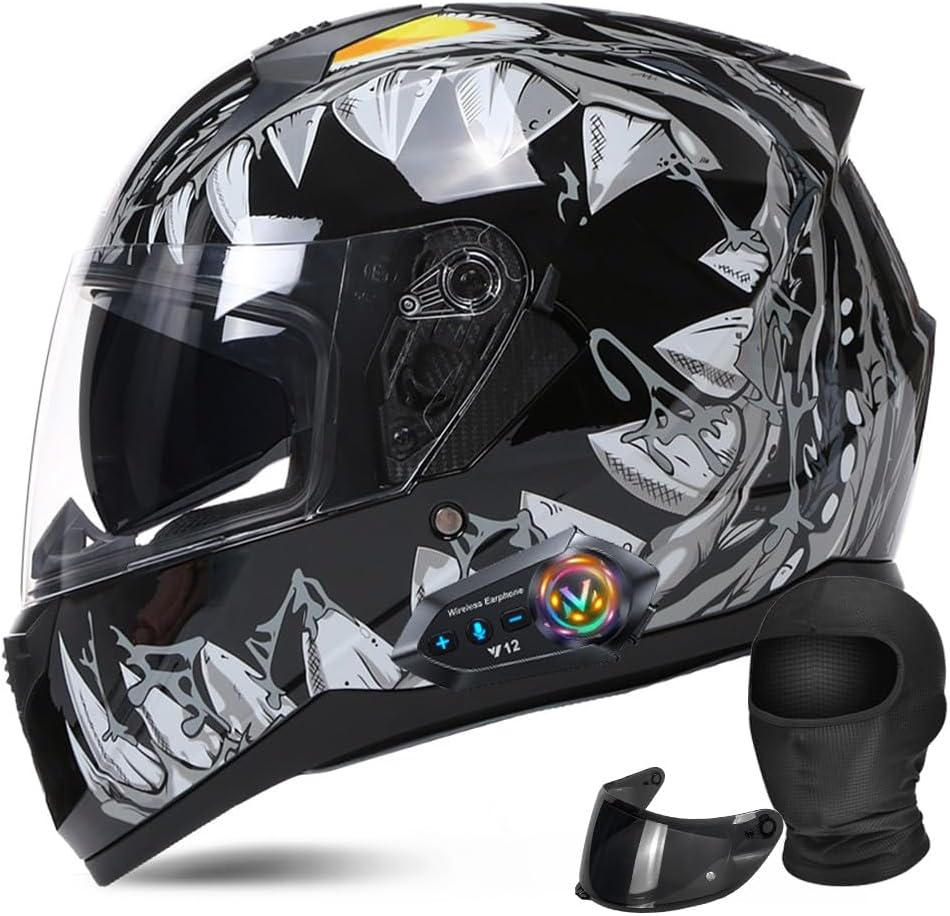 Система визора: Ощутите сверхширокий обзор на 190° через устойчивую к царапинам внешнюю линзу HD + встроенный выдвижной затемненный внутренний визор. Аэродинамическая система вентиляции (3 регулируемых вентиляционных отверстия) сохраняет поток воздуха свежим летом, предотвращая запотевание зимой. Отвечает требованиям гонщиков "casco para moto con Bluetooth" по адаптации к климату.